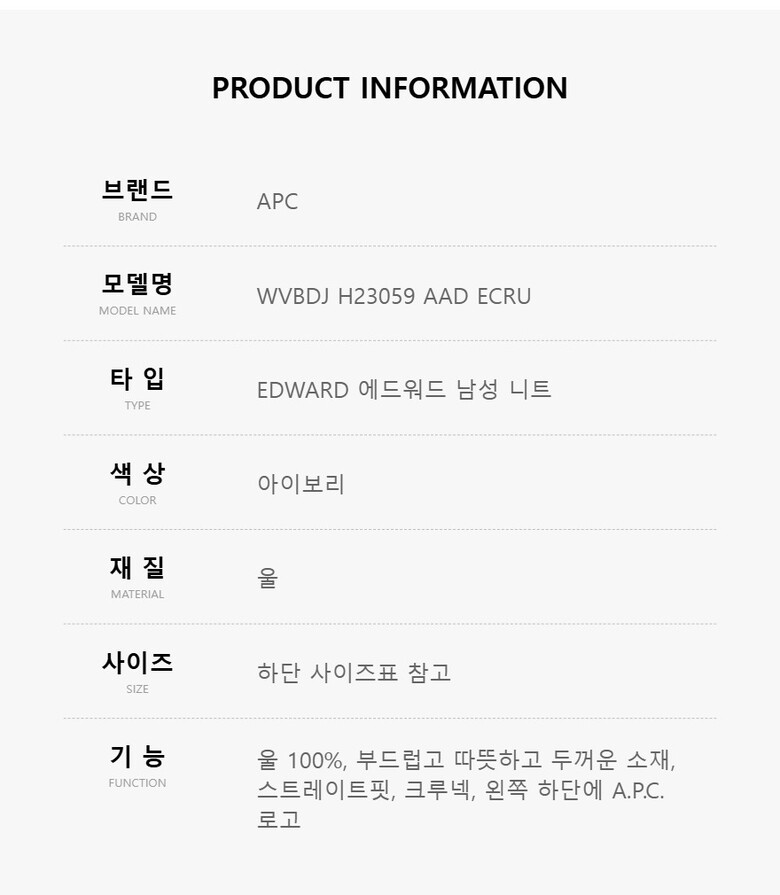 아페쎄 니트 WVBDJ H23059 AAD ECRU EDWARD 에드워드 남성니트 남자니트 당일발송