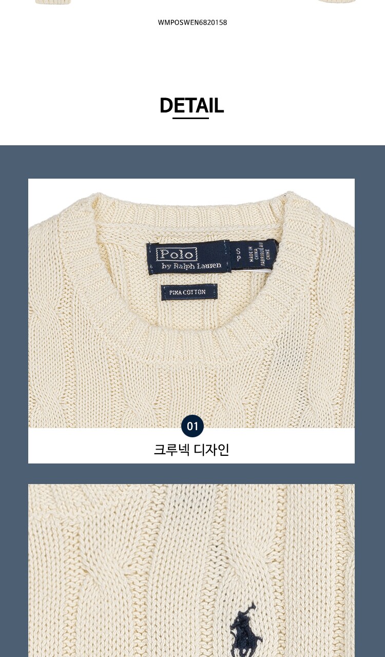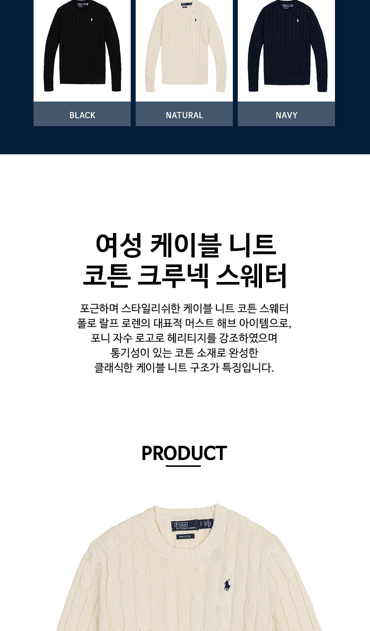 [POLO RALPH LAUREN] 폴로 랄프로렌 여성 케이블 니트 코튼 크루넥 스웨터 내추럴
