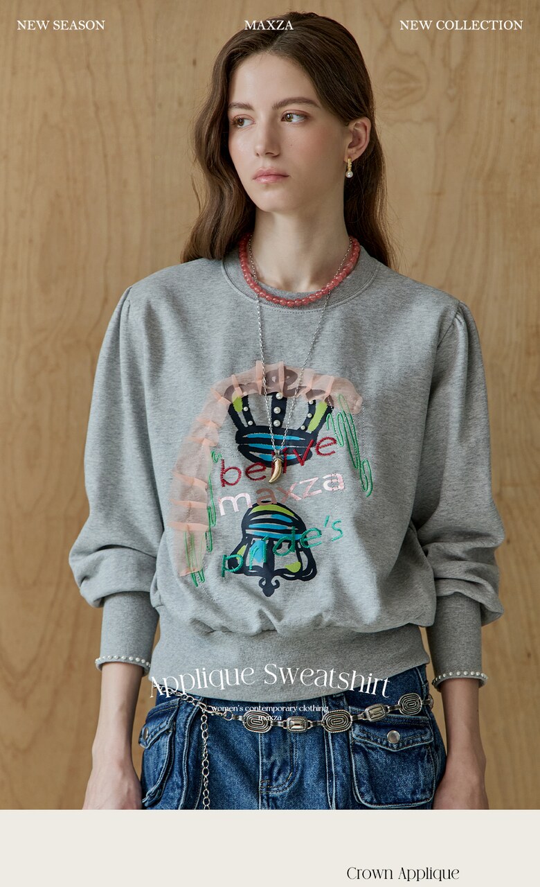 크라운 아플리케 자수 맨투맨 티셔츠