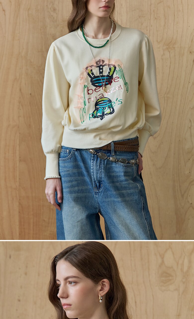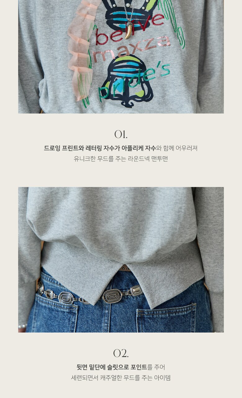 유니크한 무드를 주는 맨투맨입니다.