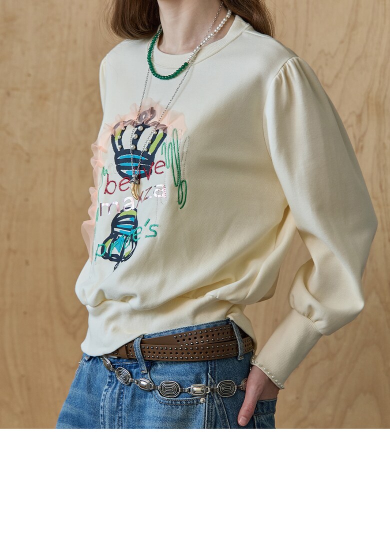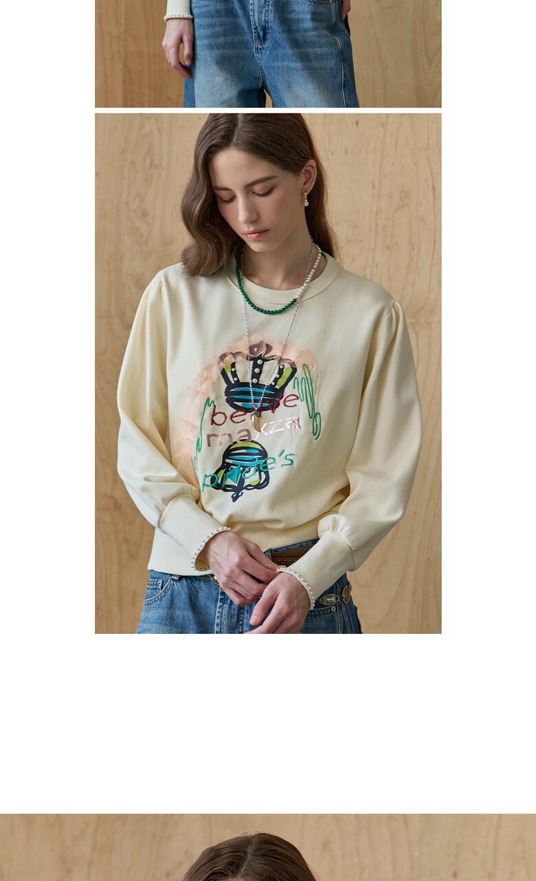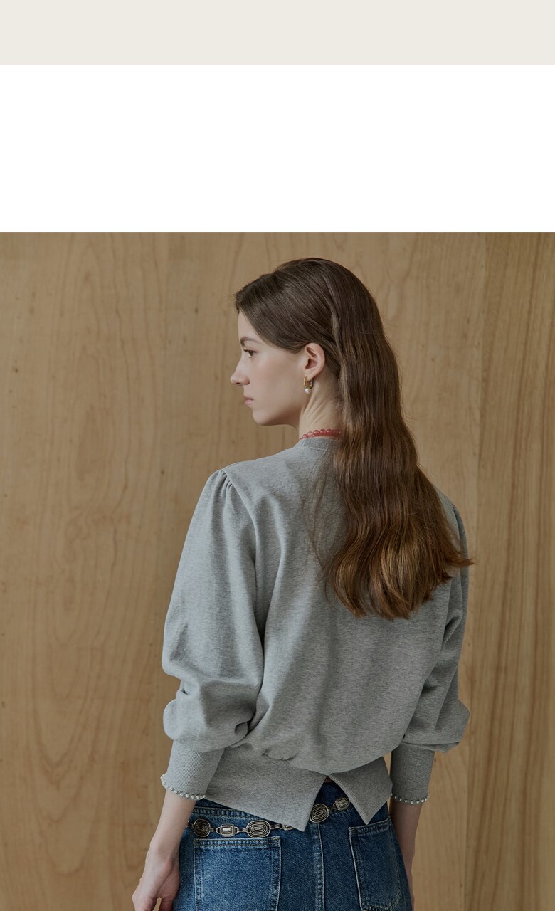 퍼프 소매와 소매 끝단에 진주 장식,