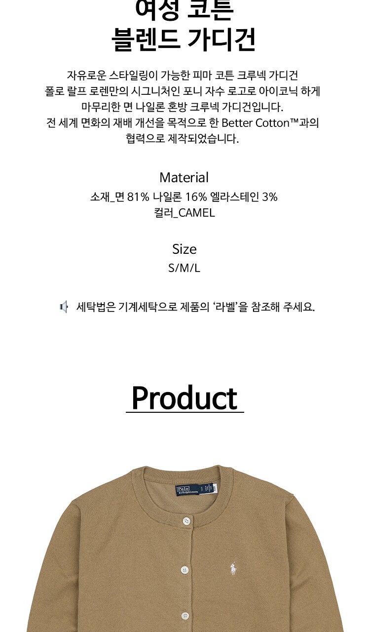 [POLO RALPH LAUREN] 폴로 랄프로렌 여성 코튼 블렌드 가디건 카멜