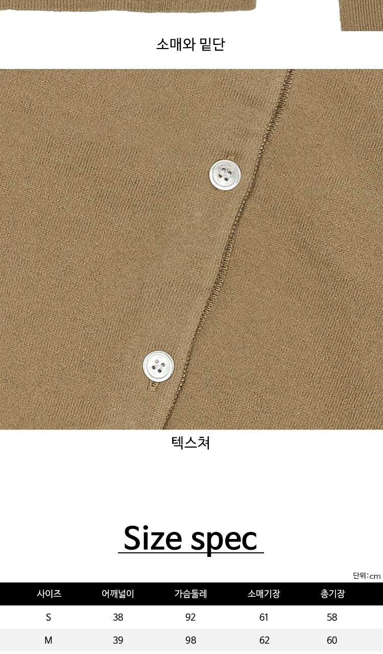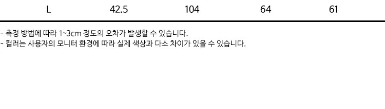 | 3. 치수 | S사이즈기준실측 : 어깨넓이 38cm, 가슴둘레 92cm, 팔길이 61cm, 총길이 58cm |