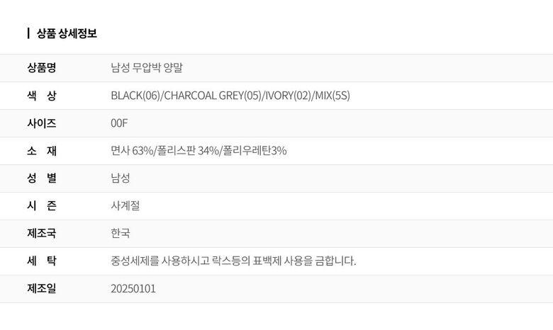 1. 종류 | 양말 |