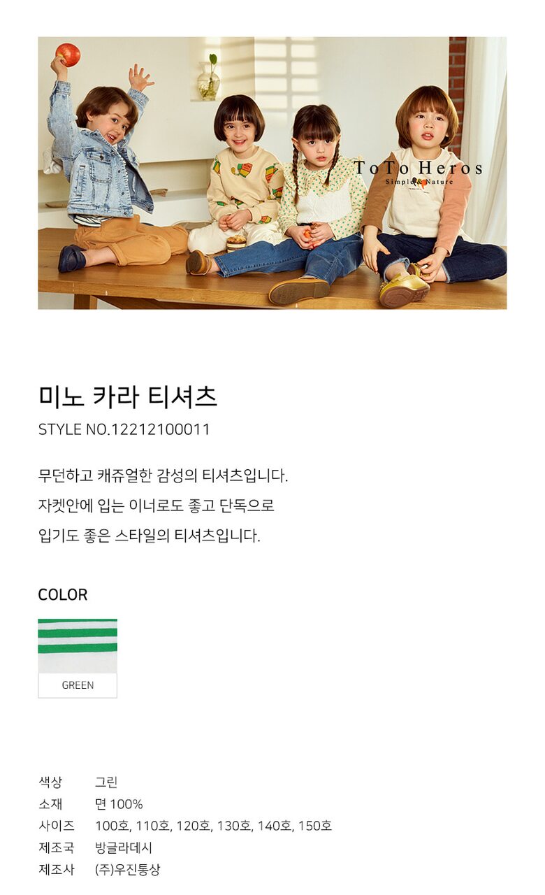 1. 제품 소재 (섬유의 조성 또는 혼용률을 백분율로 표시, 기능성인 경우 성적서 또는 허가서) | 면 100% |