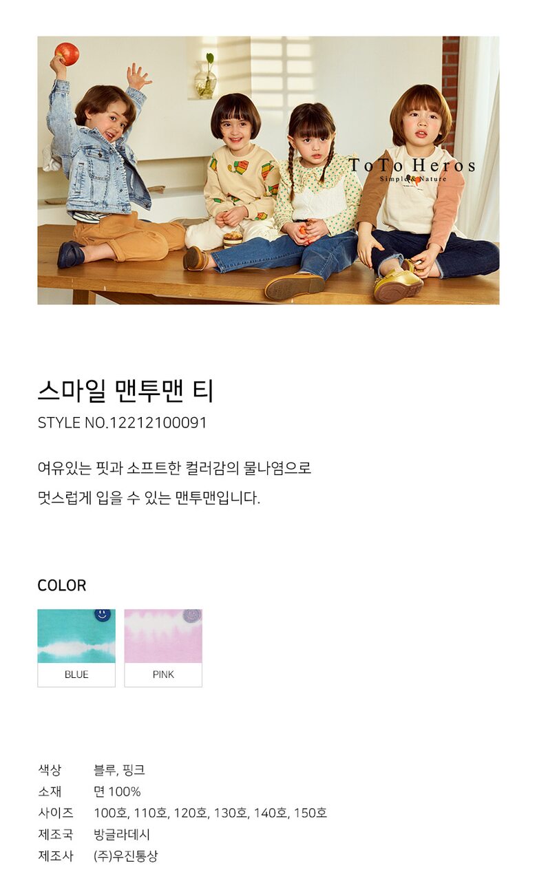 1. 제품 소재 (섬유의 조성 또는 혼용률을 백분율로 표시, 기능성인 경우 성적서 또는 허가서) | 면 100% |