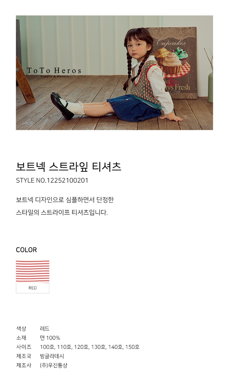 1. 제품 소재 (섬유의 조성 또는 혼용률을 백분율로 표시, 기능성인 경우 성적서 또는 허가서) | 면 100% |