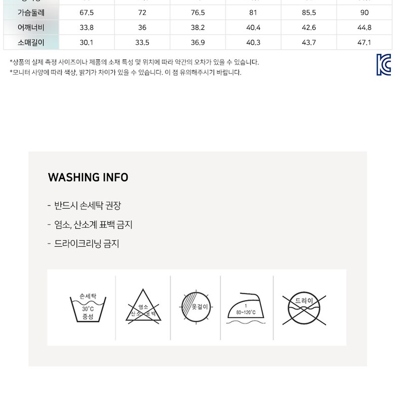 6. 세탁방법 및 취급시 주의사항 손세탁