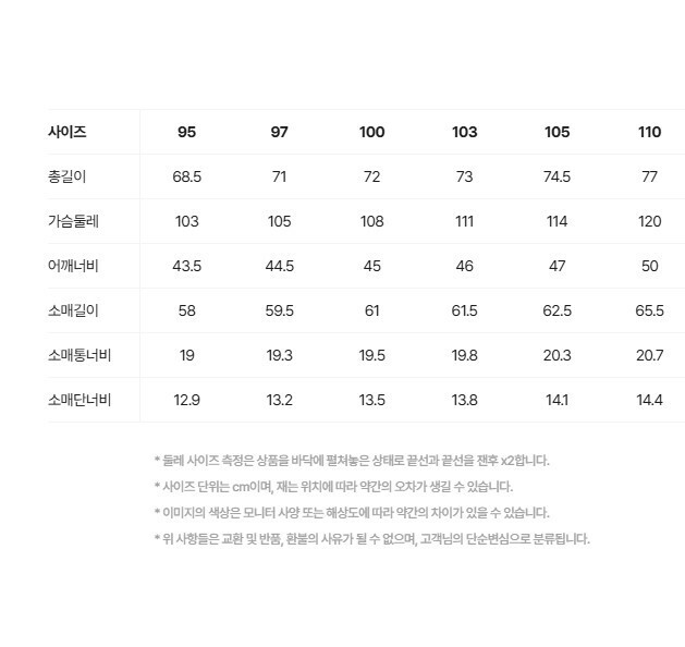 | 6. 세탁방법 및 취급시 주의사항 | 상품상세참조 |