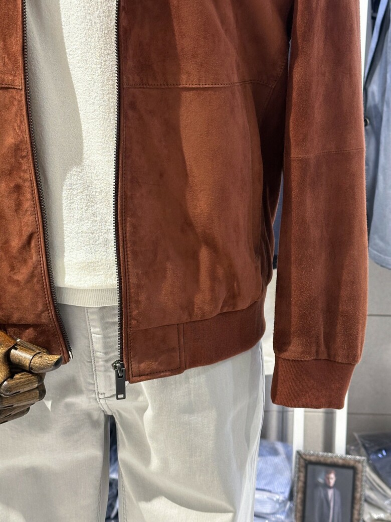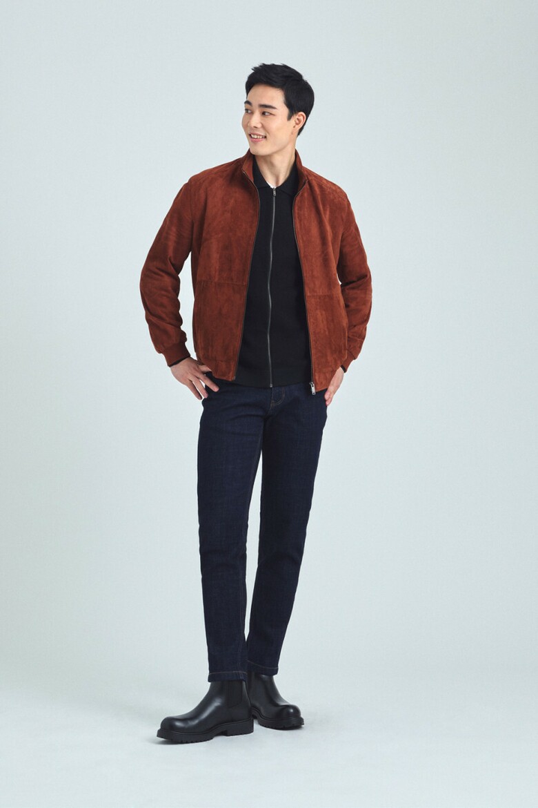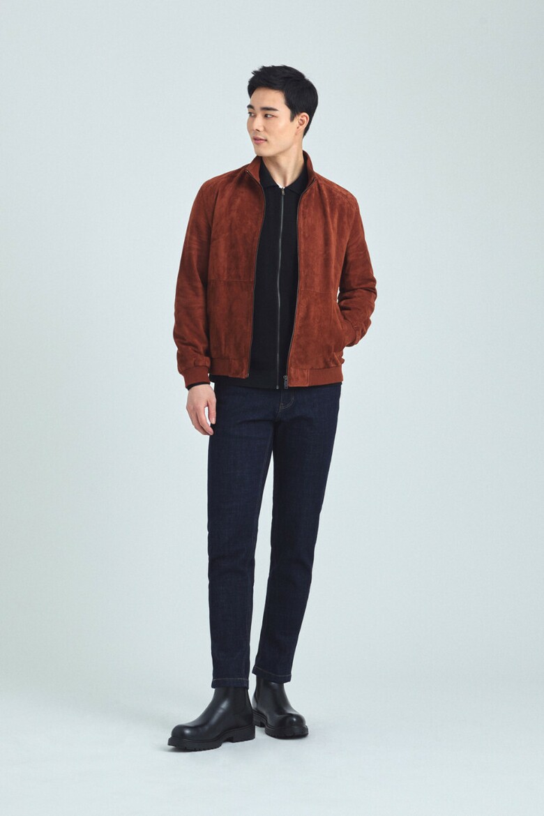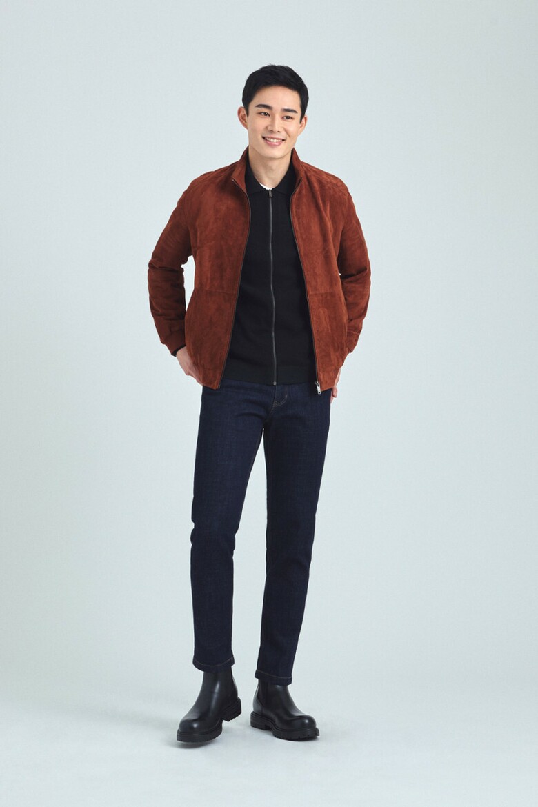 브렌우드 (천연산양가죽) 레드오렌지 스웨이드 블루종 남자 점퍼 BRUDX25111ORX