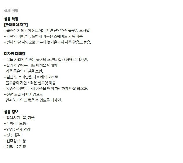 | 6. 세탁방법 및 취급시 주의사항 | 상품상세참조 |
