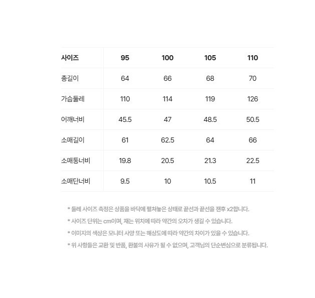 | 6. 세탁방법 및 취급시 주의사항 | 상품상세참조 |