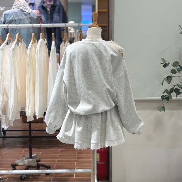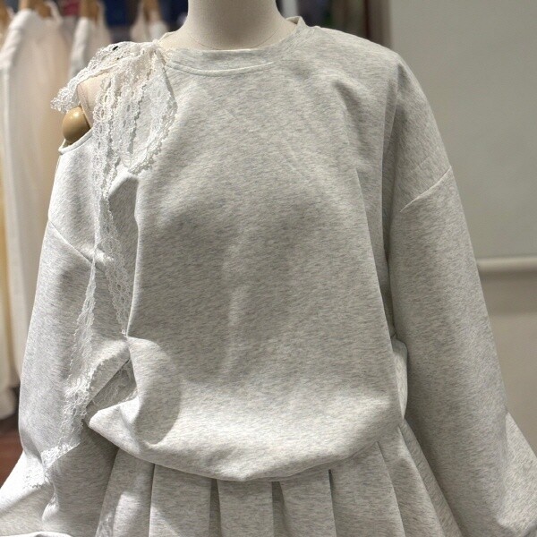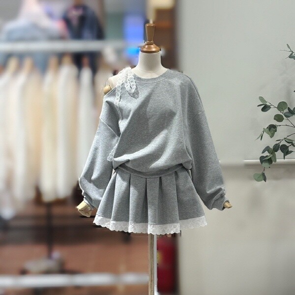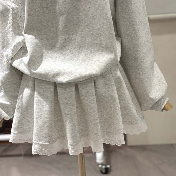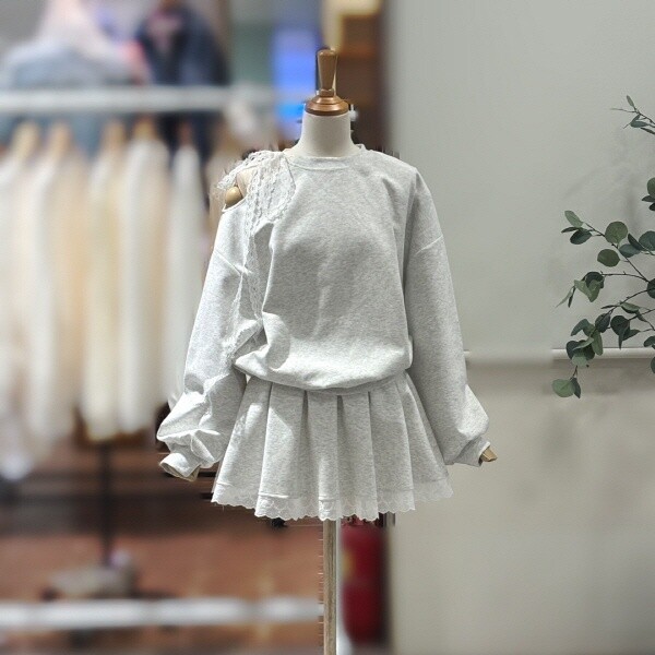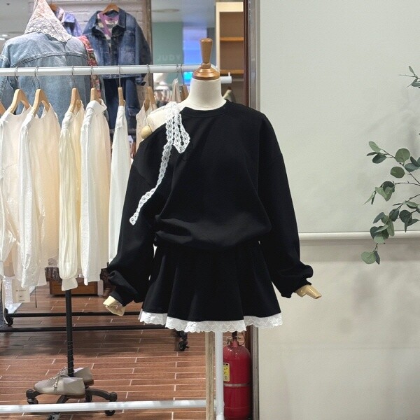 FTASET1126_리본레이스 맨투맨 미니스커트세트