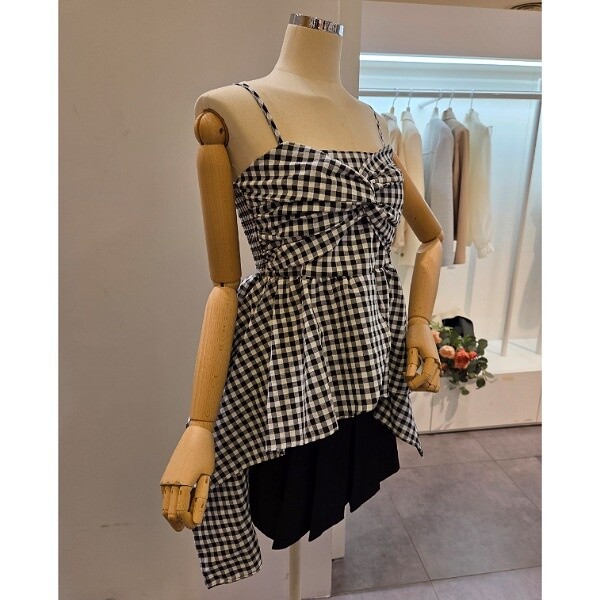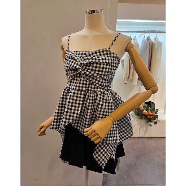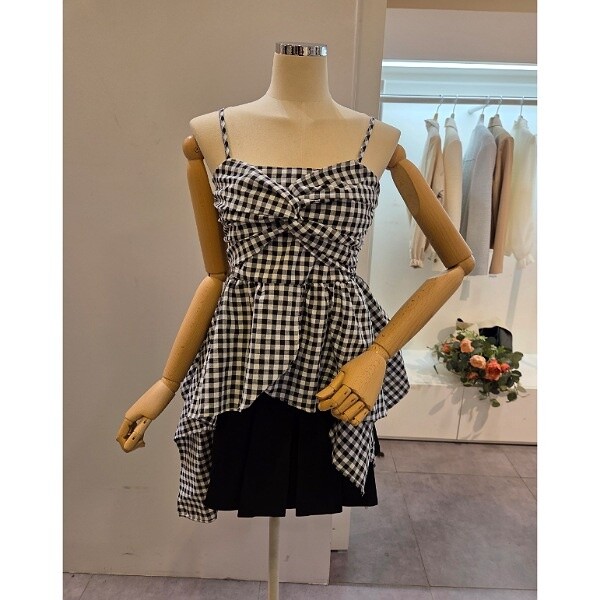 CP3WTP03_체크 뷔스티에 탑 블라우스