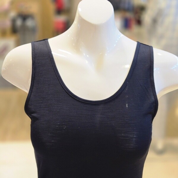 냉감효과와 찰랑거리는 드레이프성이 우수한 "인견"소재의 민소매?런닝으로 레이스 없이 심플하게 마무리하여 기본으로 시원하게 착용 할수 있는 제품