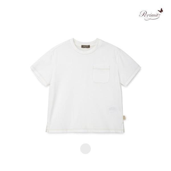 P2525T140_ 아동 기본 배색 화이트 반팔 티셔츠