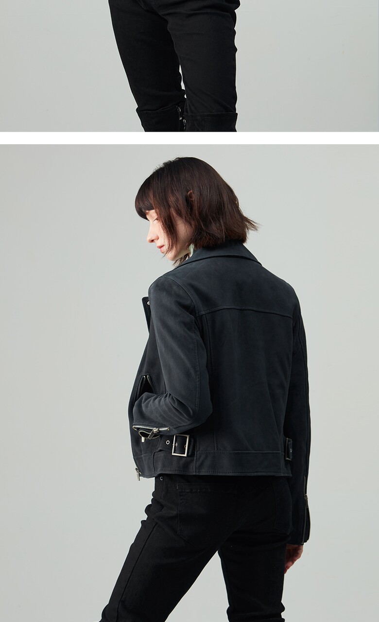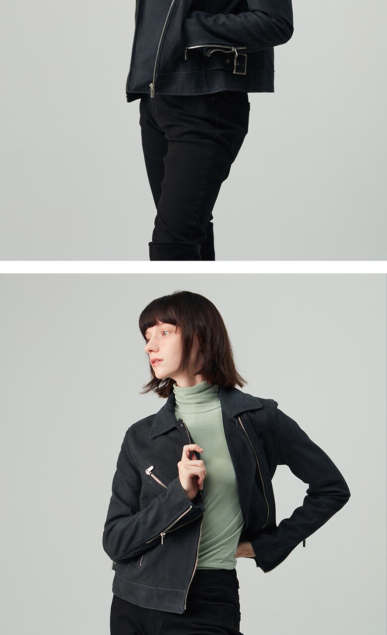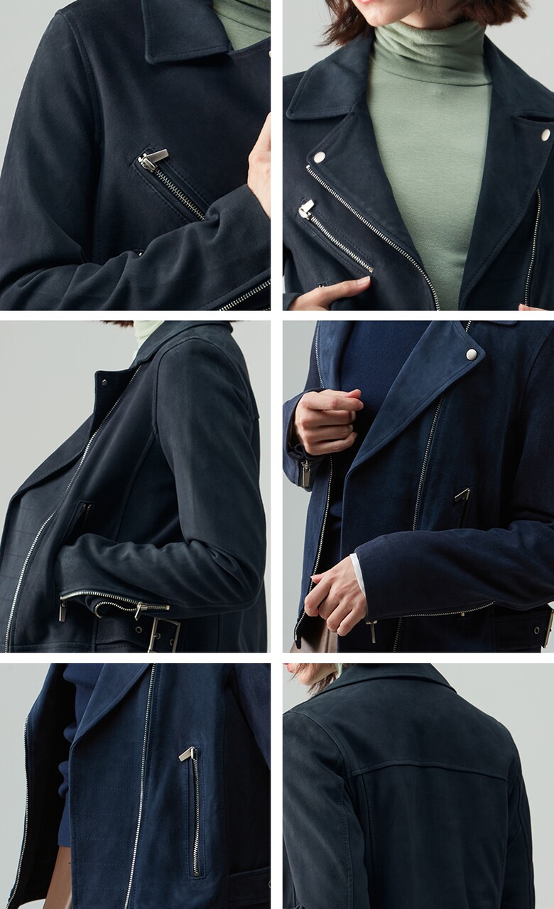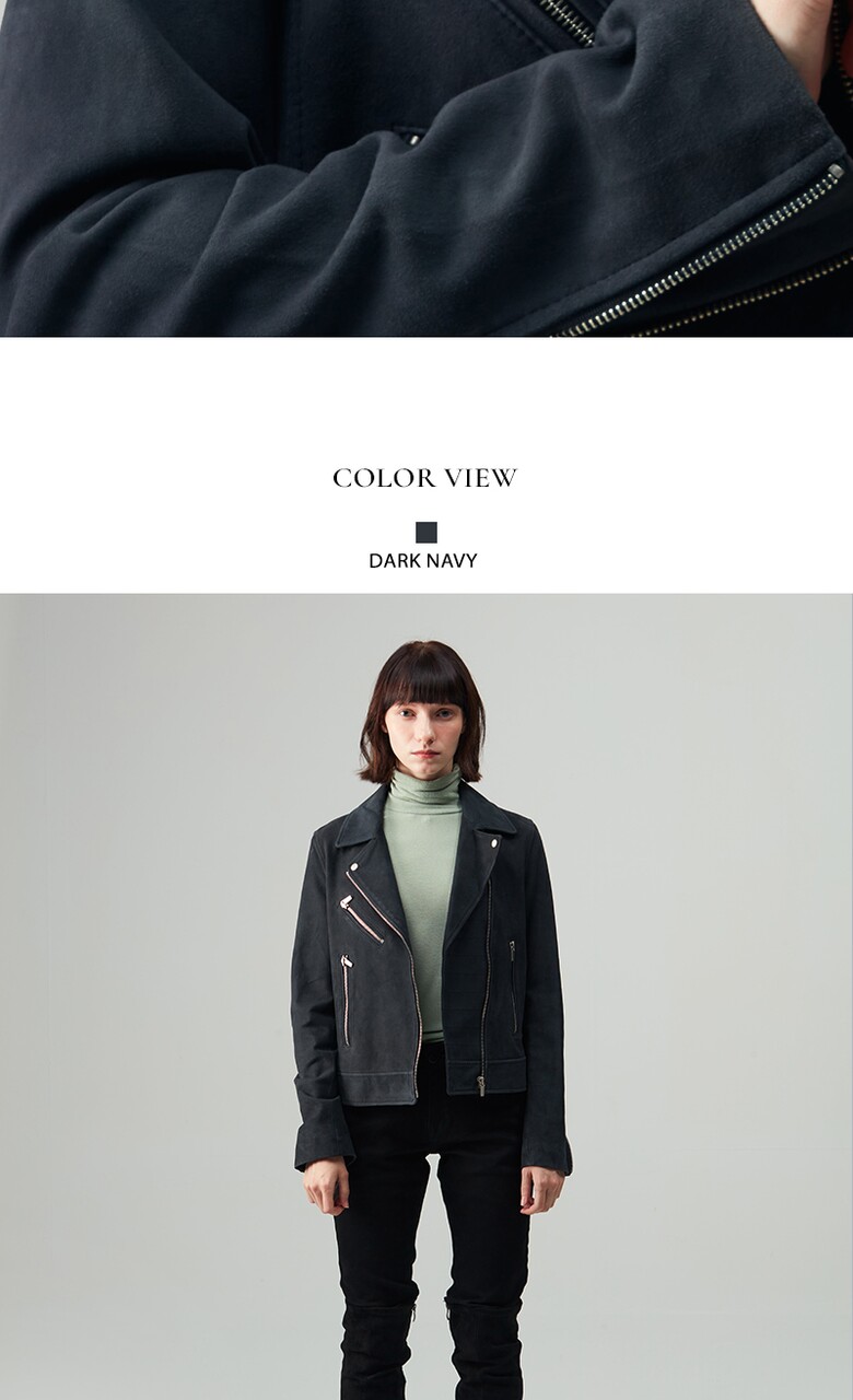 후스타일 여성 모토 스웨이드 라이더자켓 다크네이비