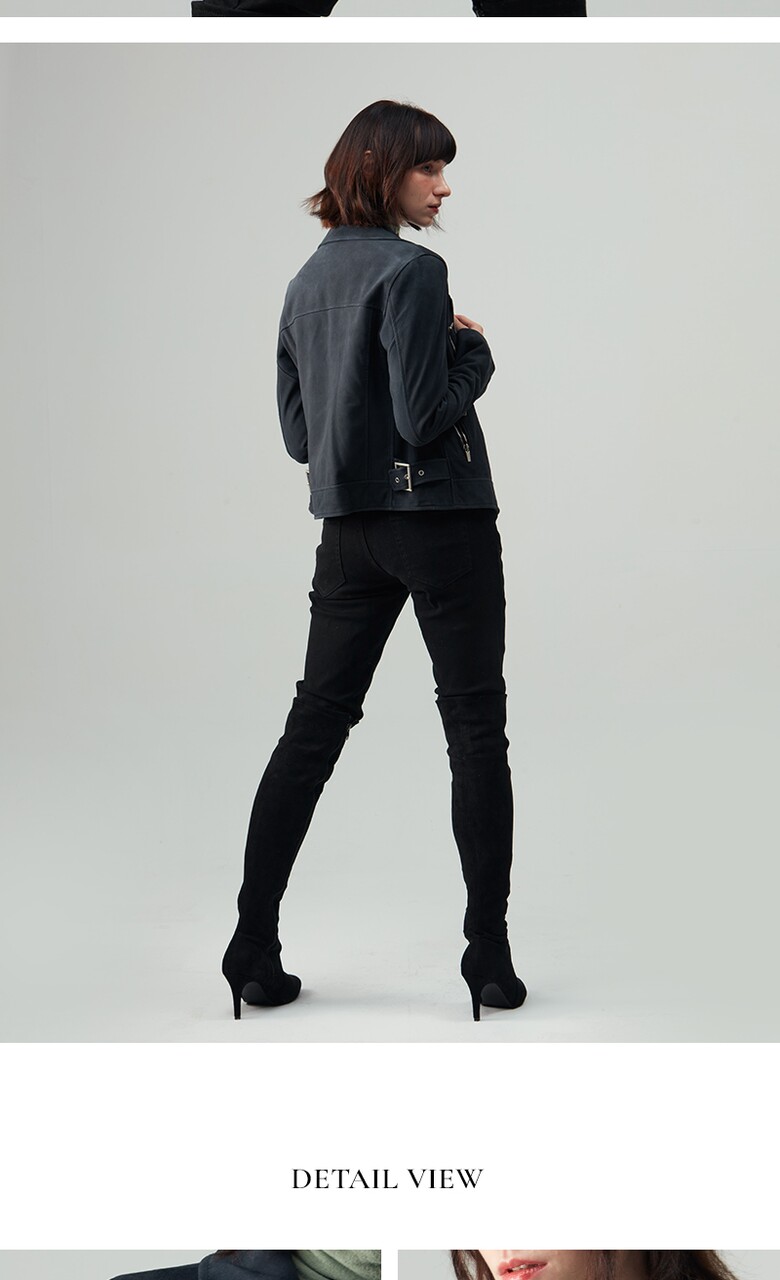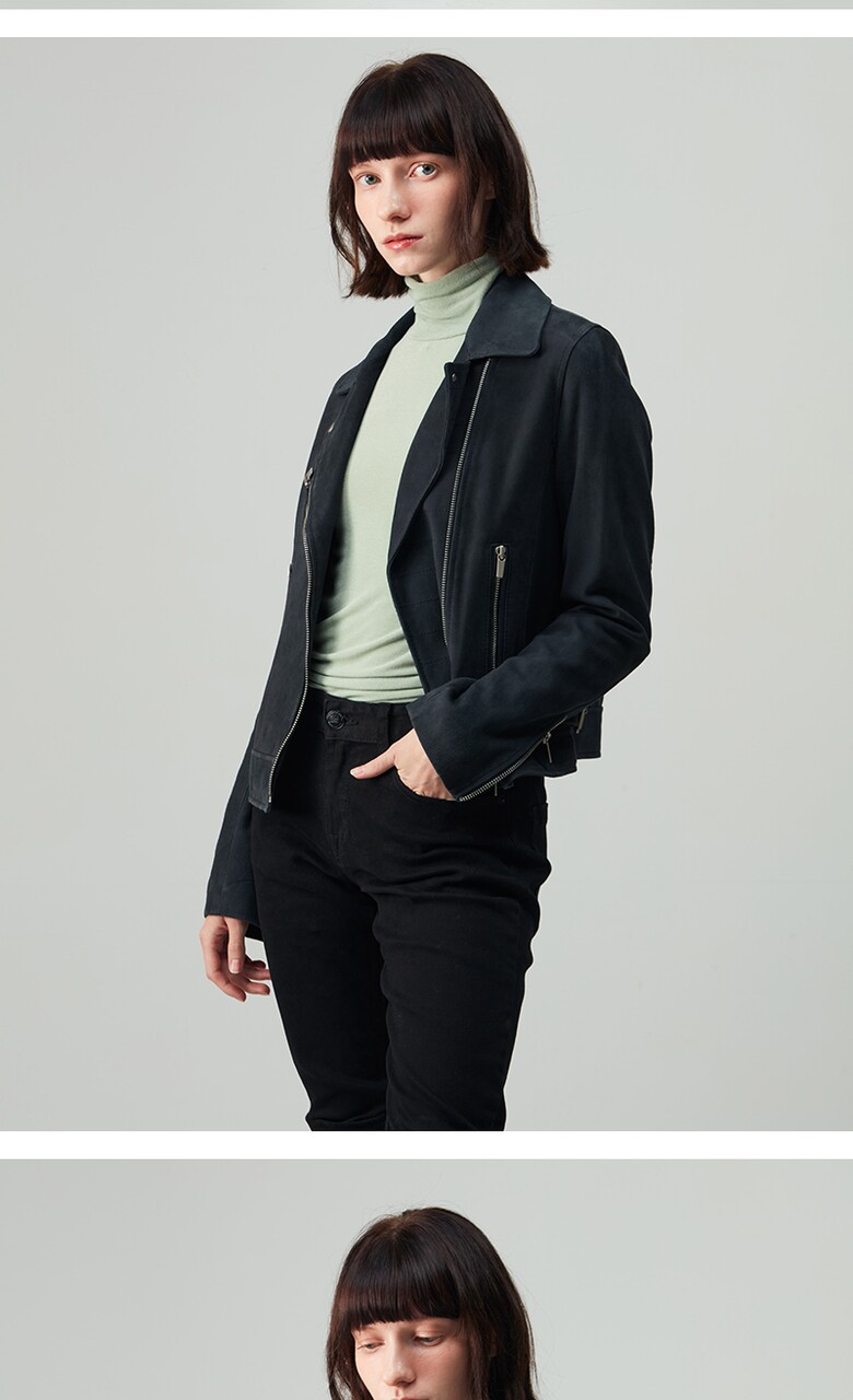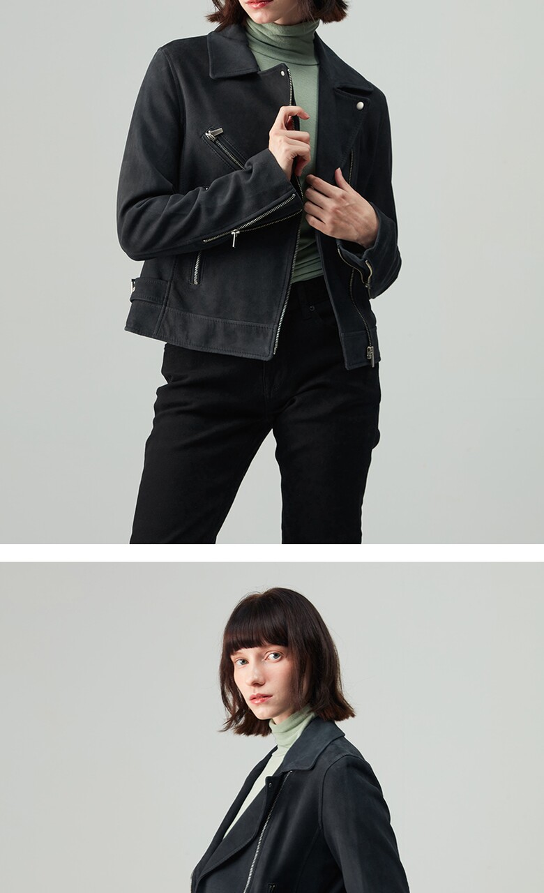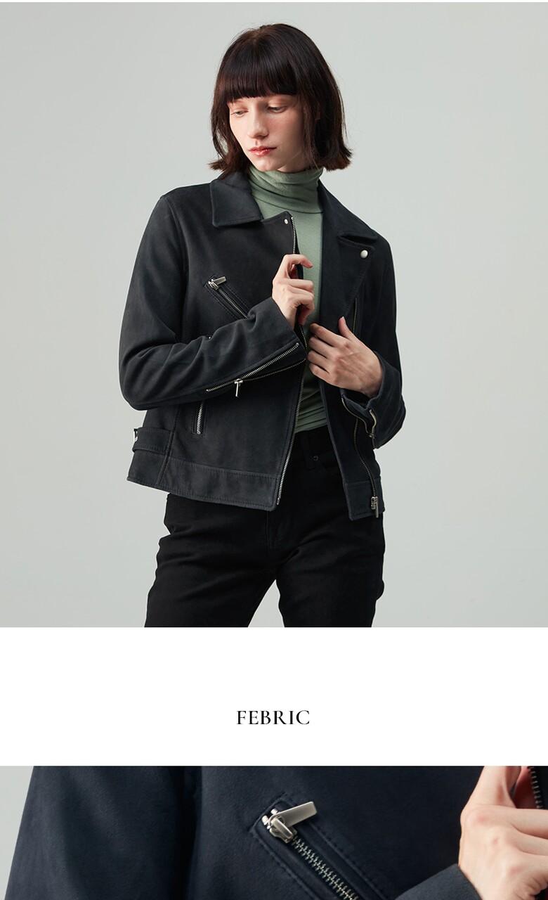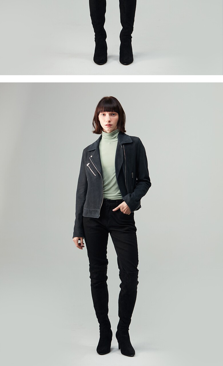 후스타일 여성 모토 스웨이드 라이더자켓 다크네이비