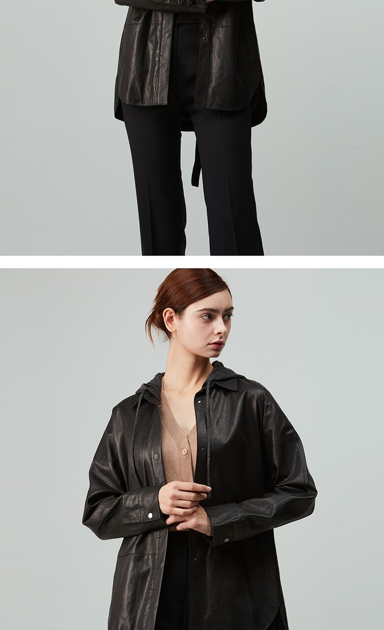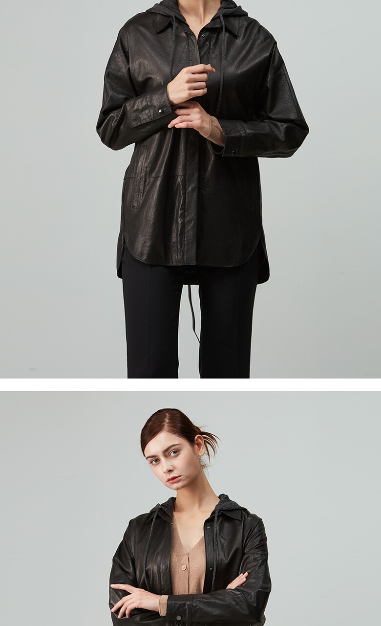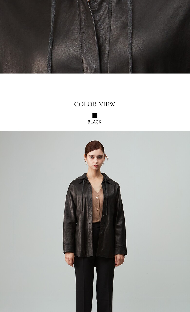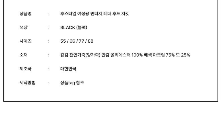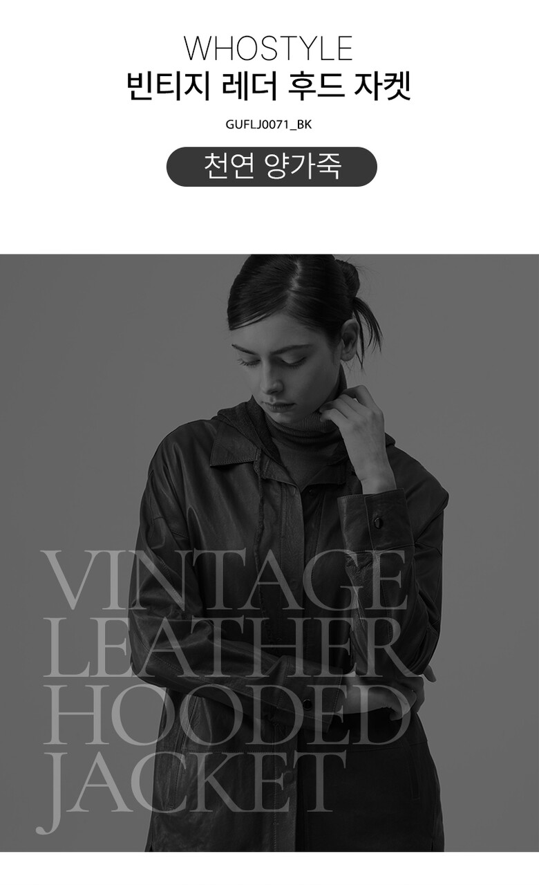 후스타일 여성 빈티지 레더 후드 자켓 블랙
