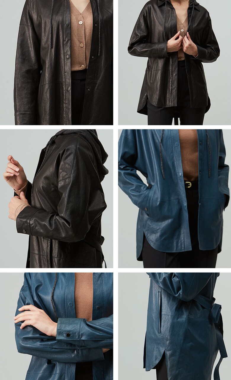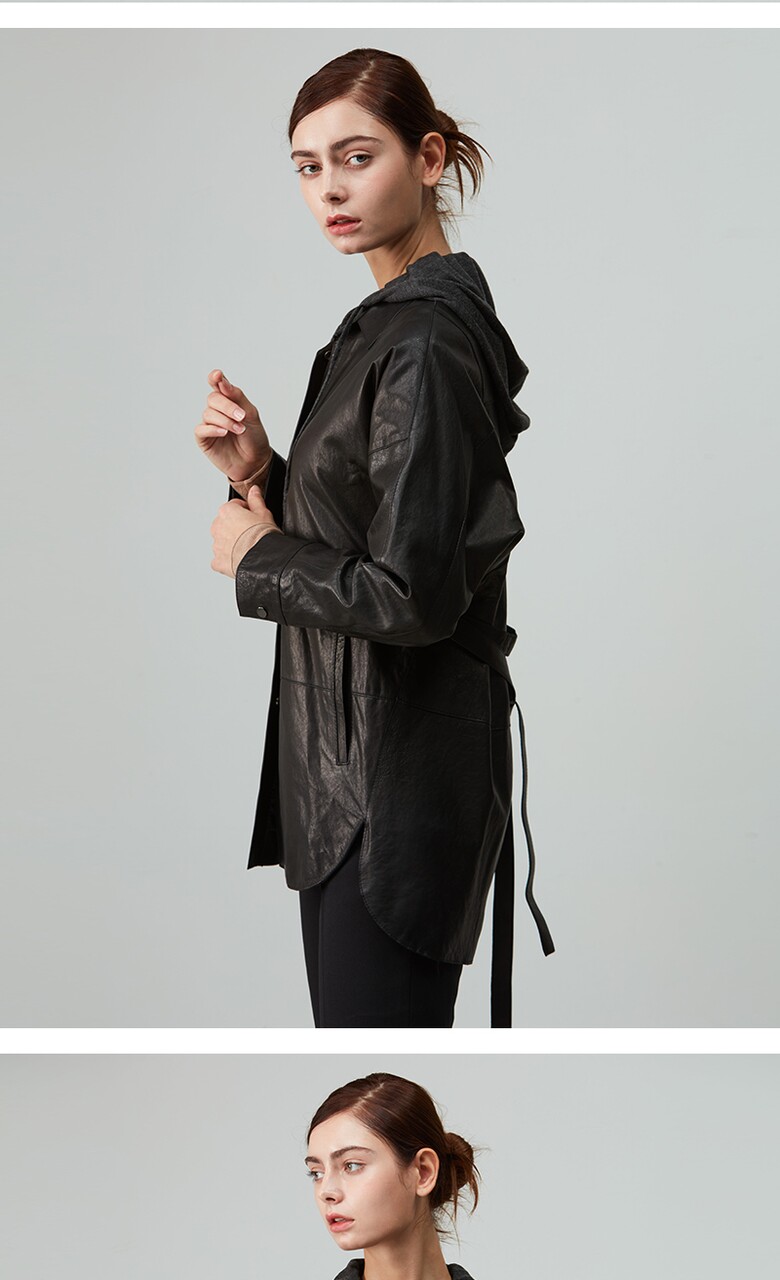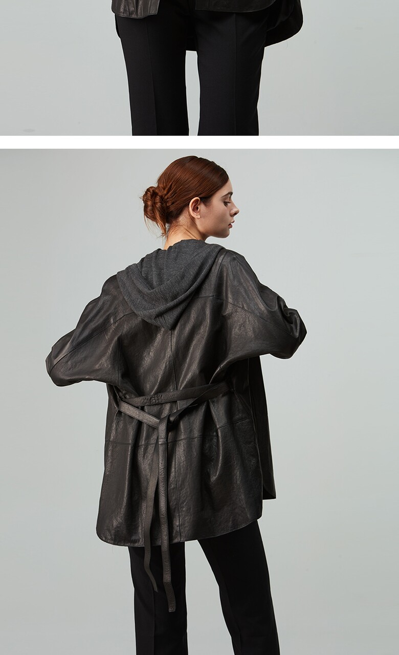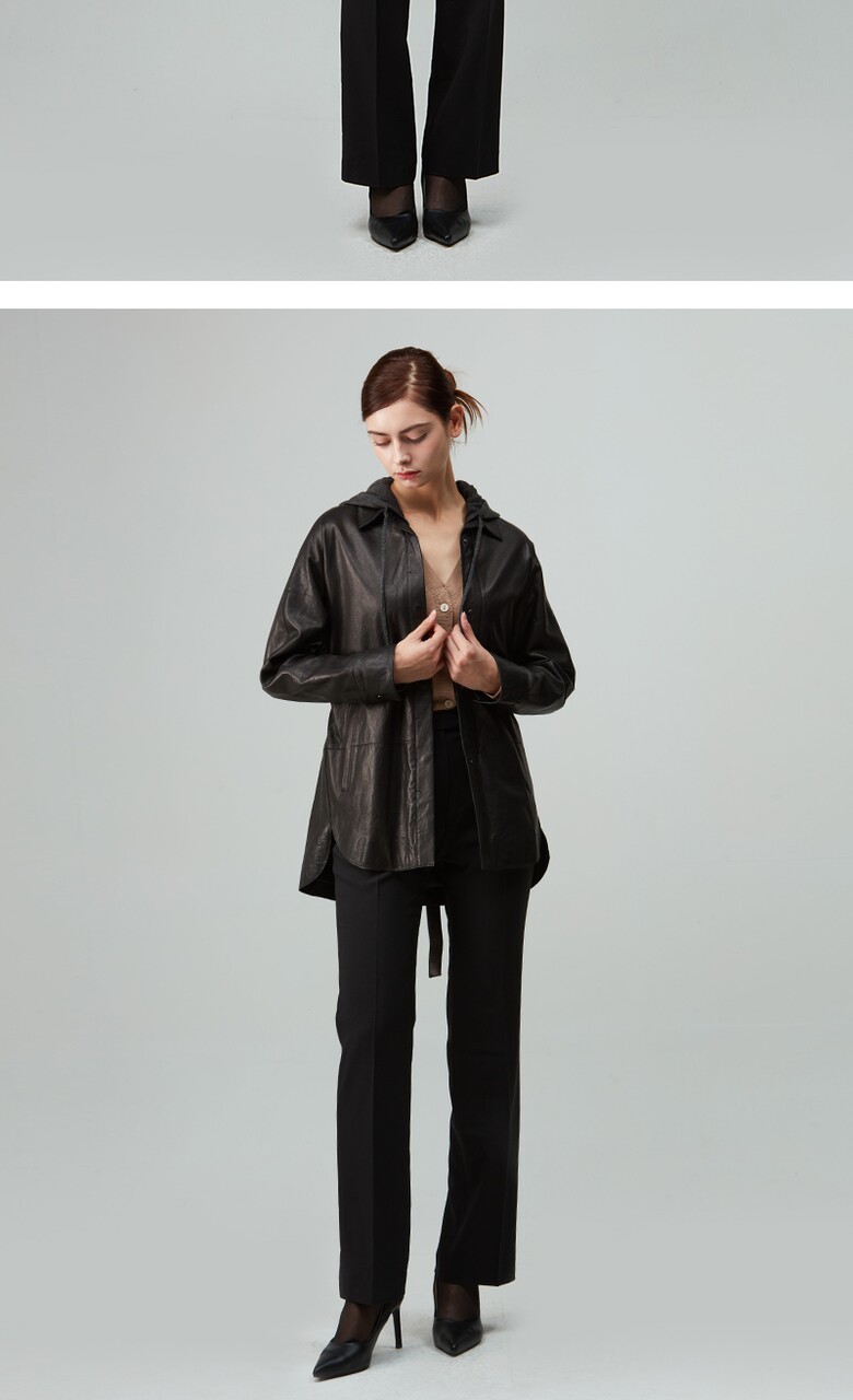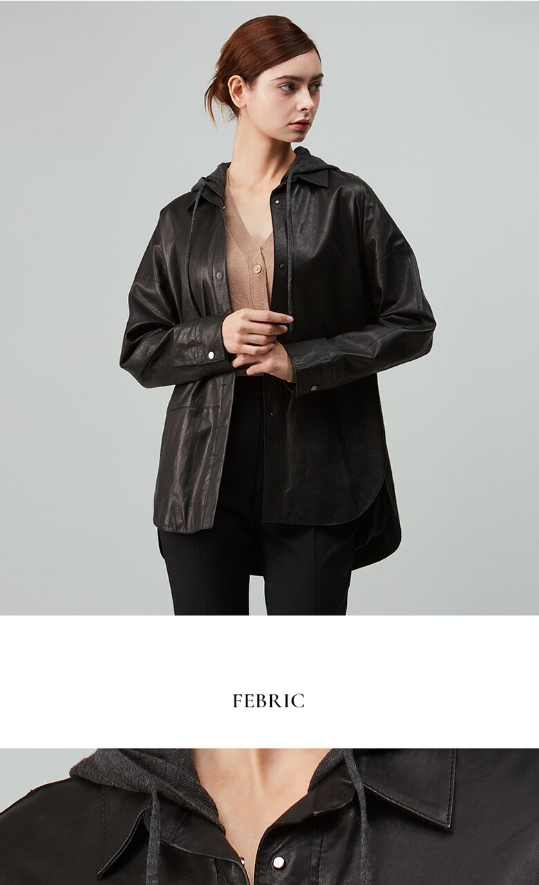 후스타일 여성 빈티지 레더 후드 자켓 블랙