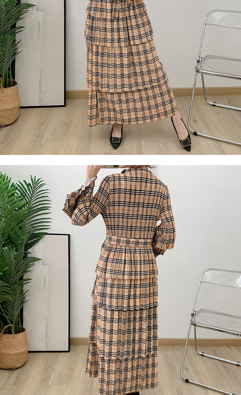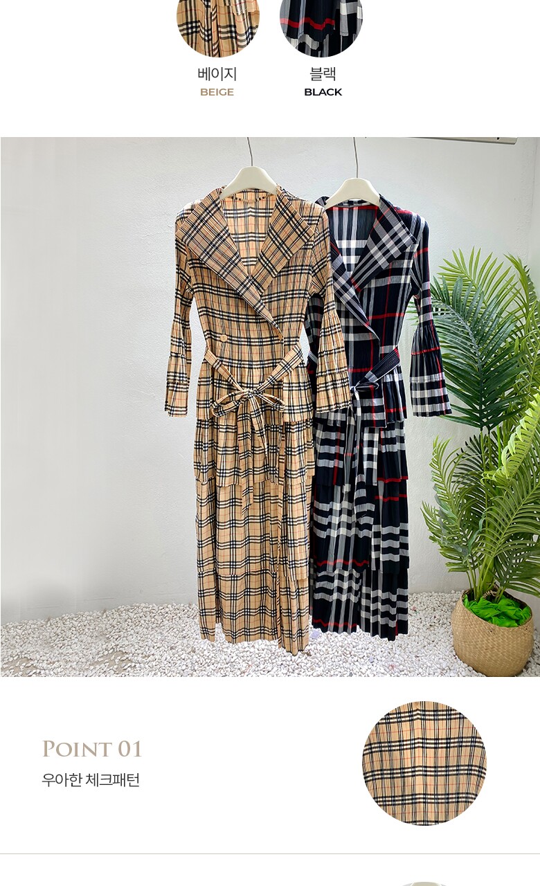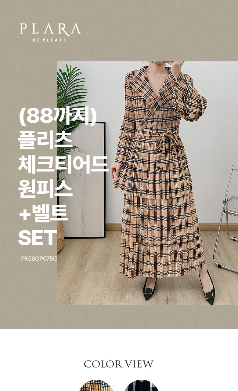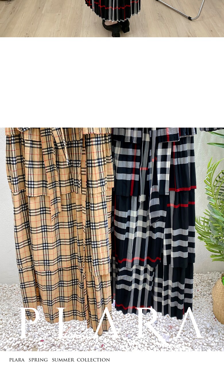 플라라 (88까지)플리츠체크티어드원피스+벨트SET