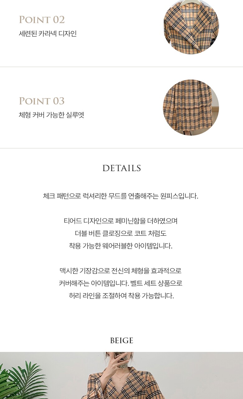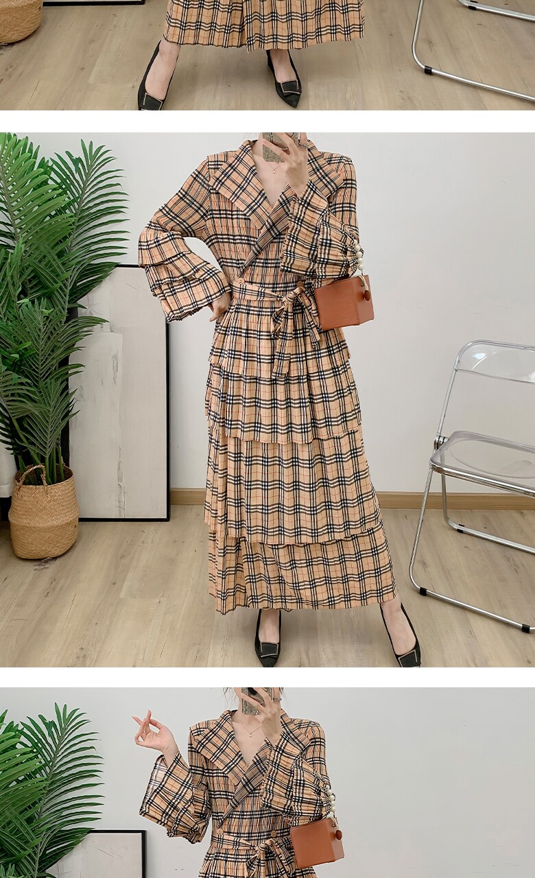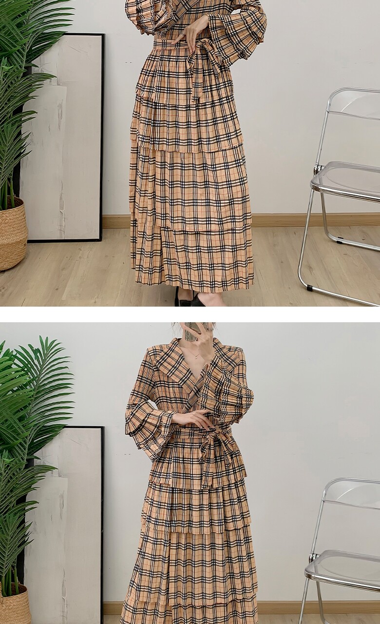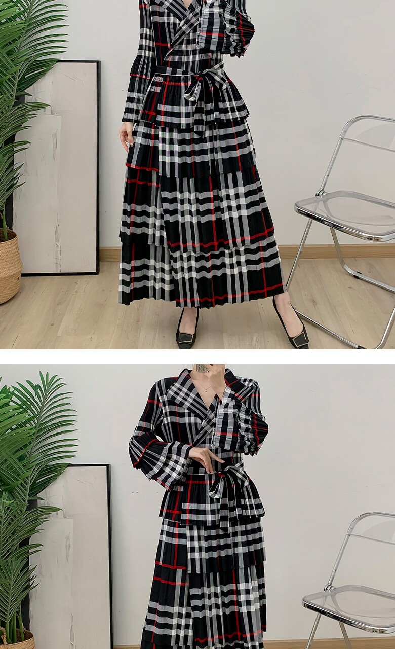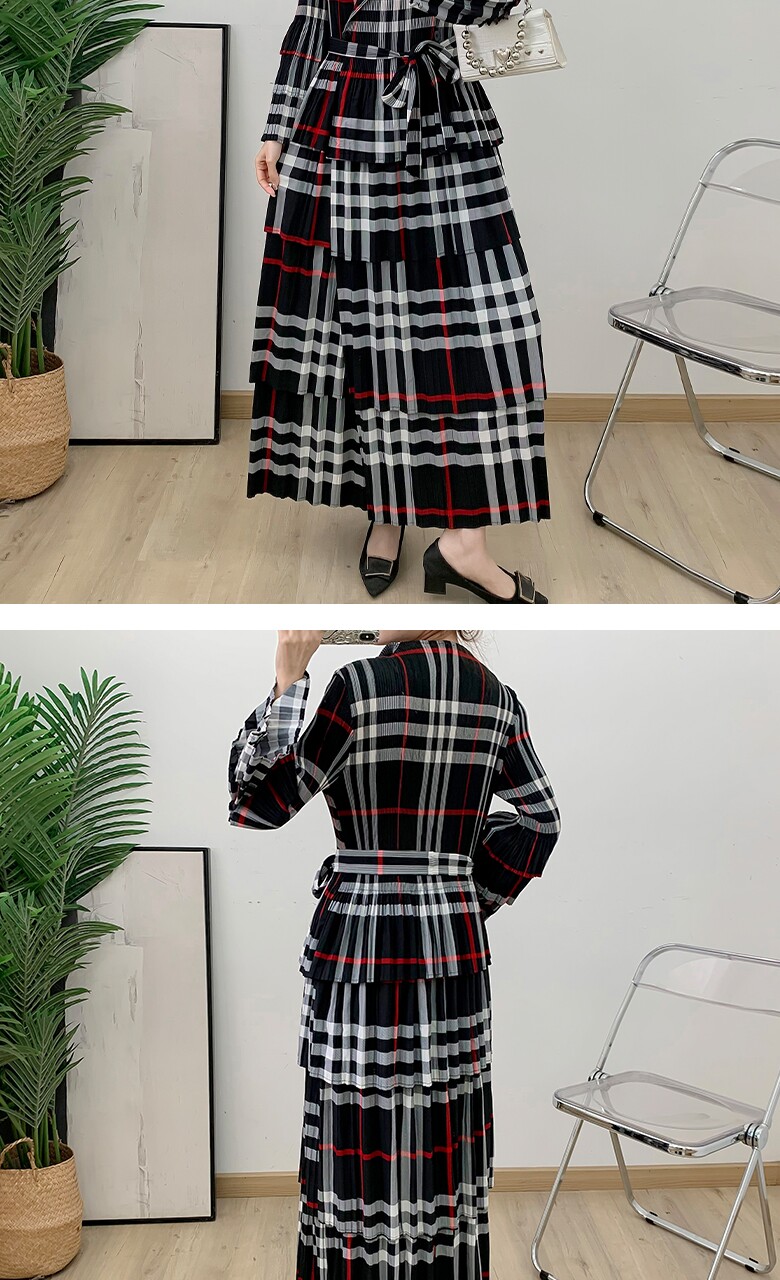 플라라 (88까지)플리츠체크티어드원피스+벨트SET
