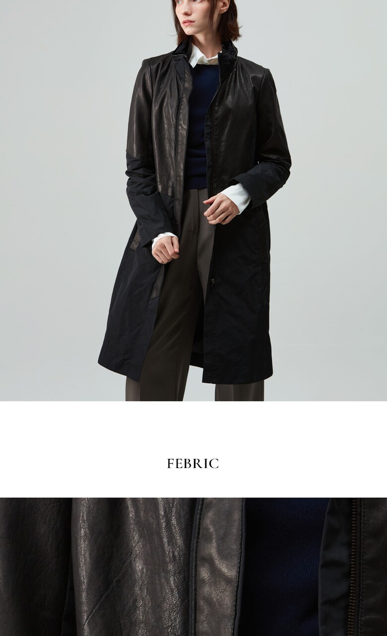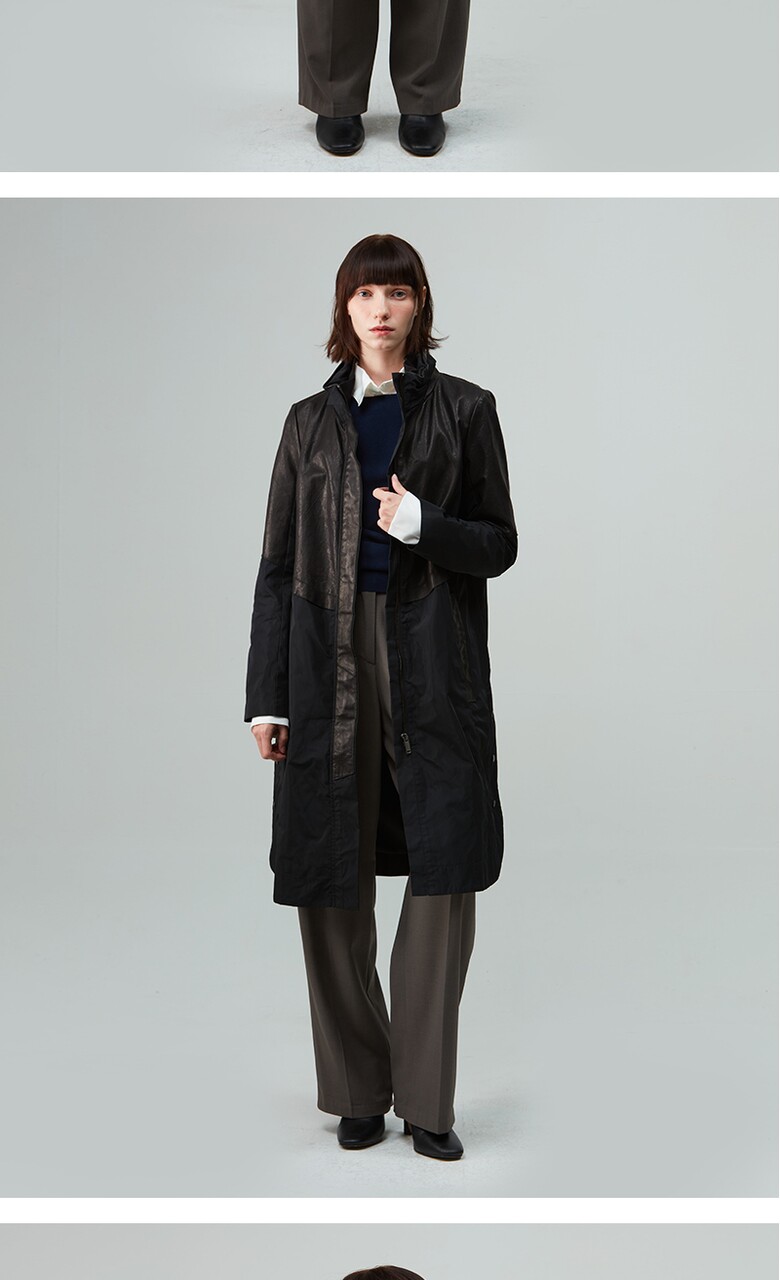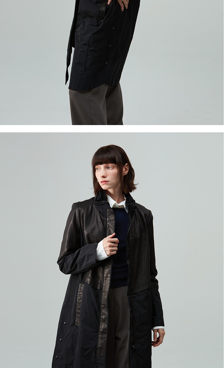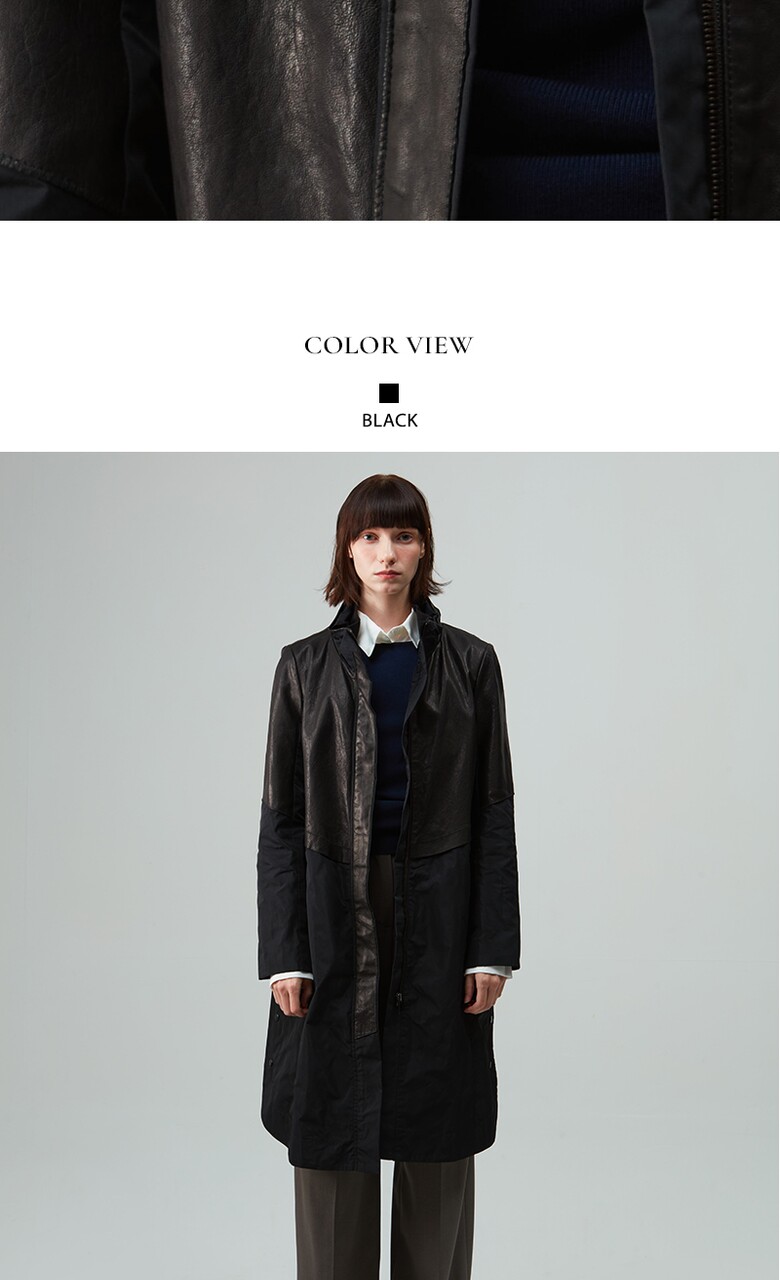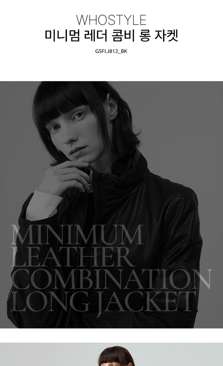 후스타일 여성 미니멈 레더 콤비 롱 자켓 블랙