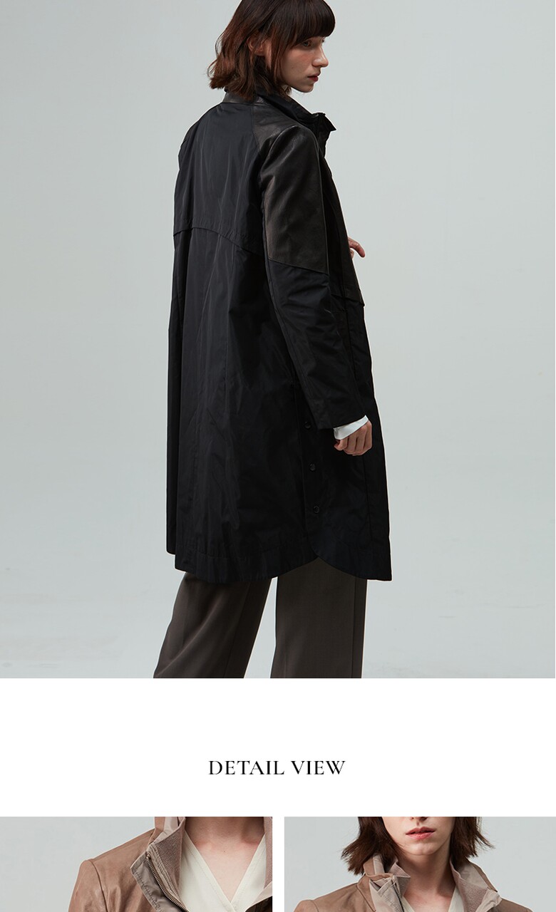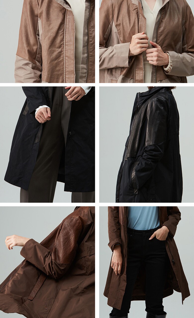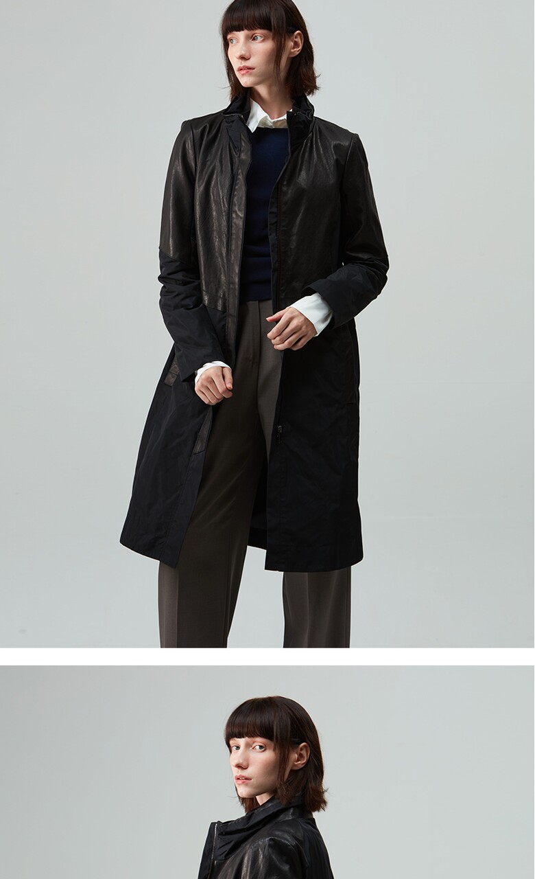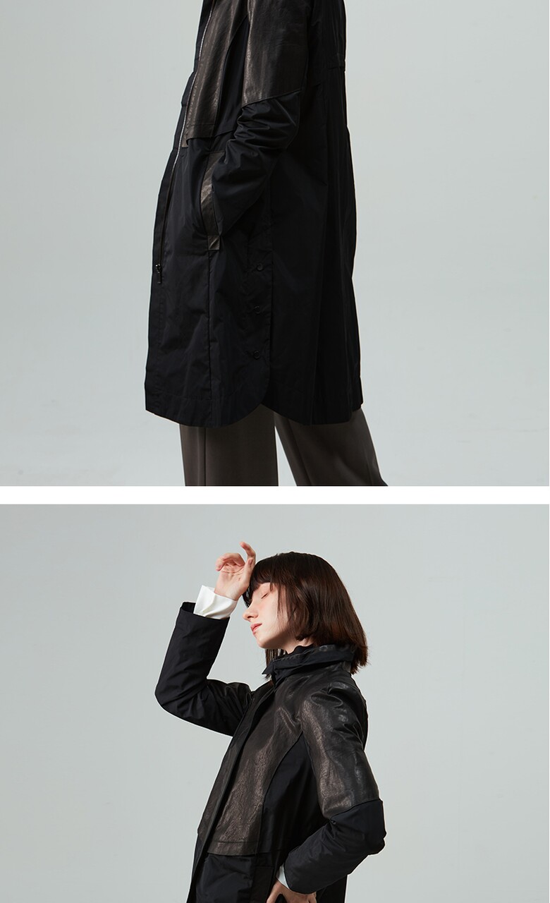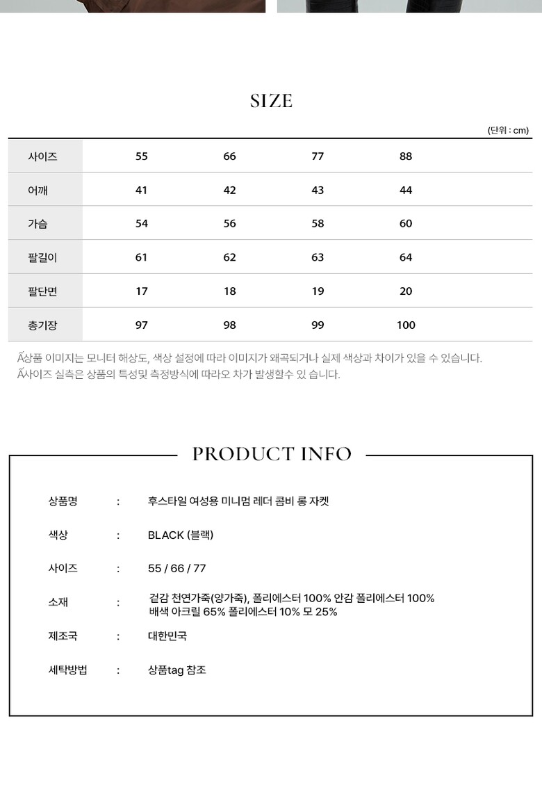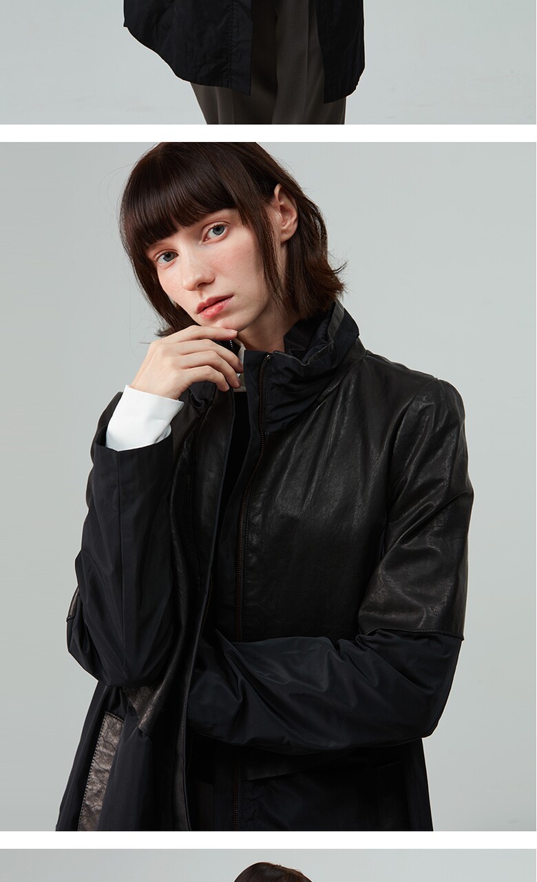 후스타일 여성 미니멈 레더 콤비 롱 자켓 블랙