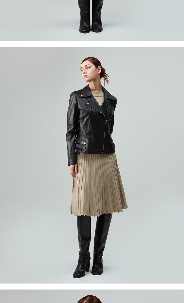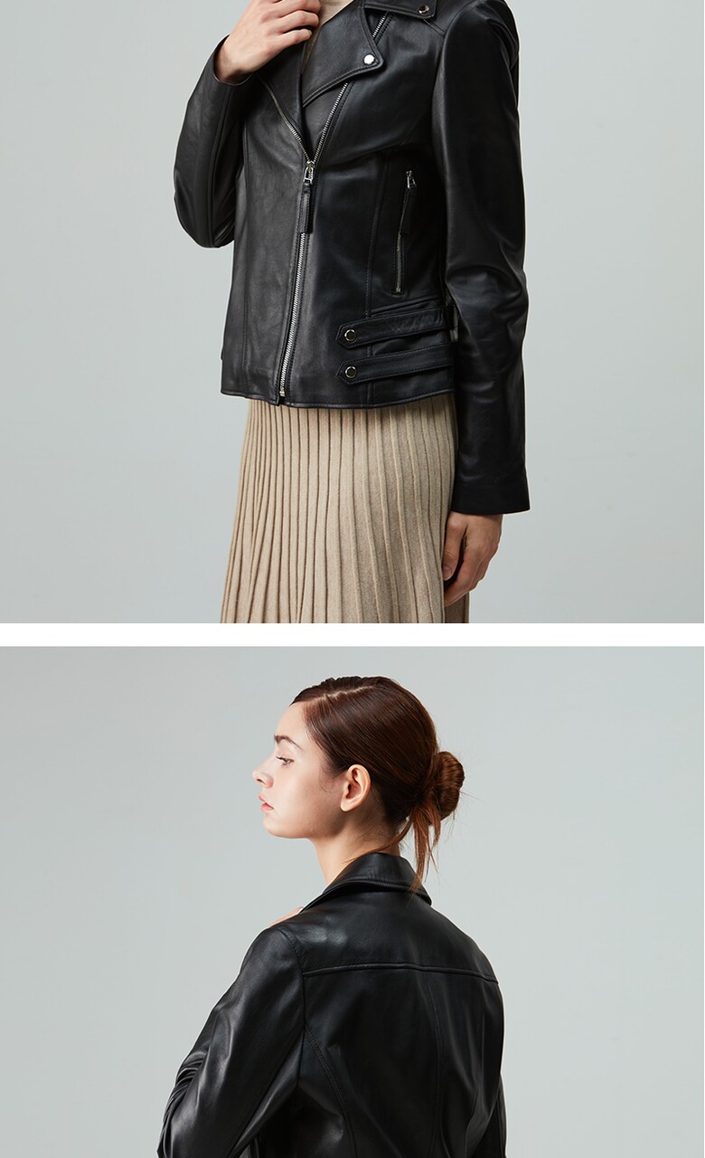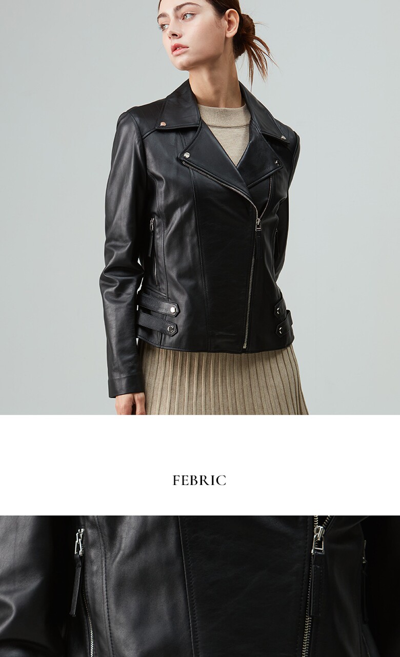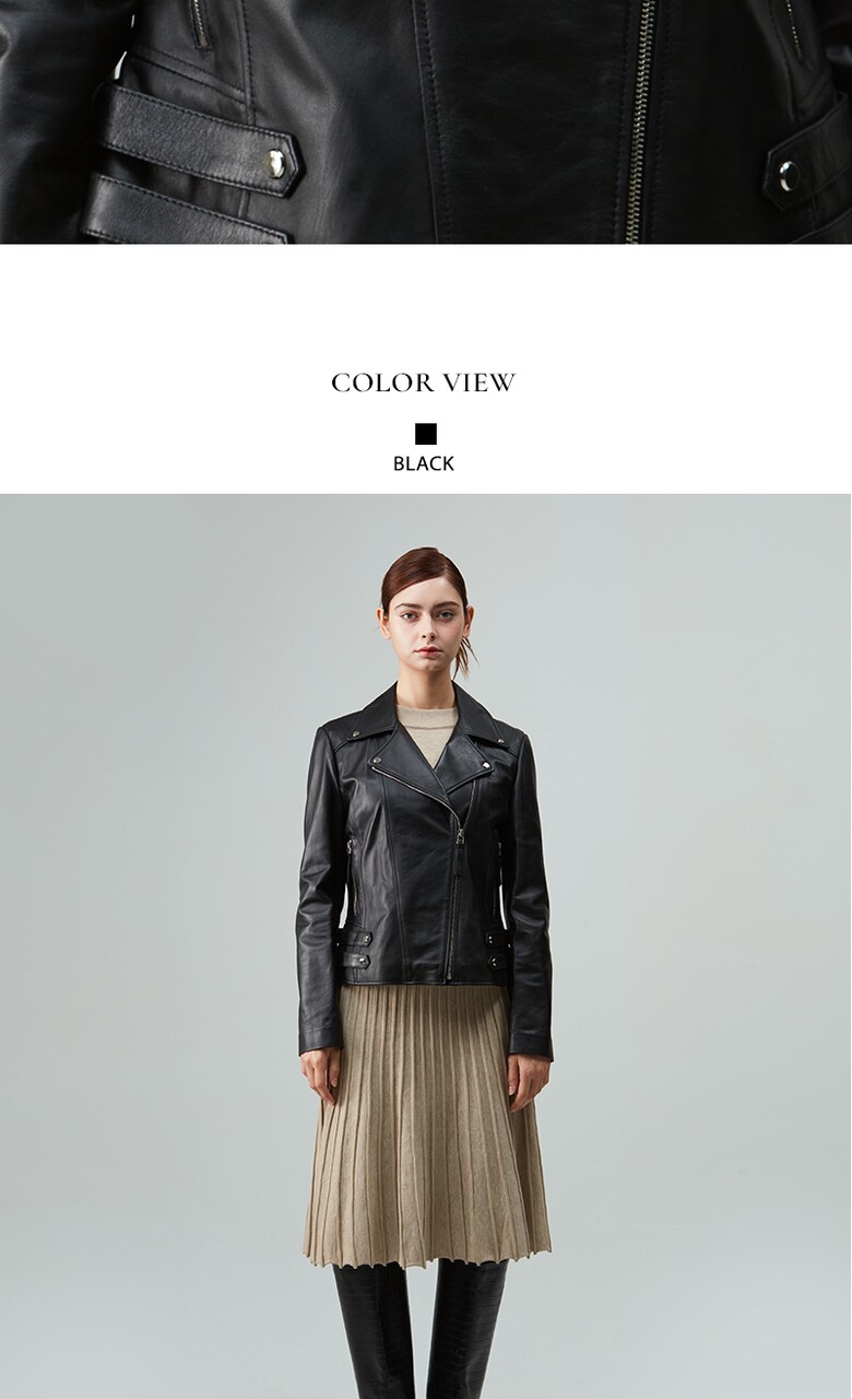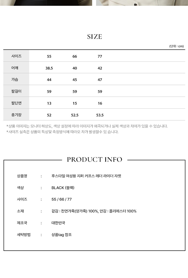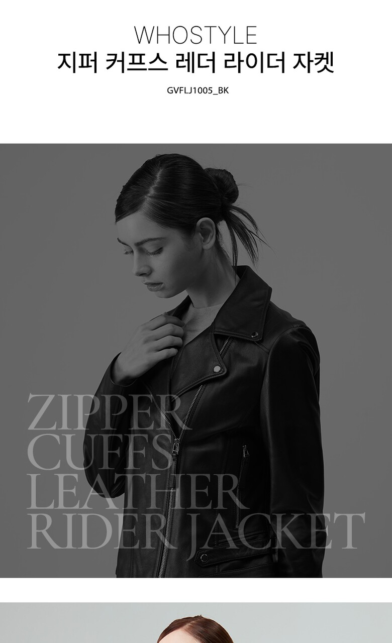 후스타일 여성 지퍼 커프스 레더 라이더 자켓 블랙