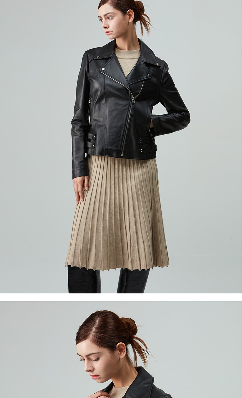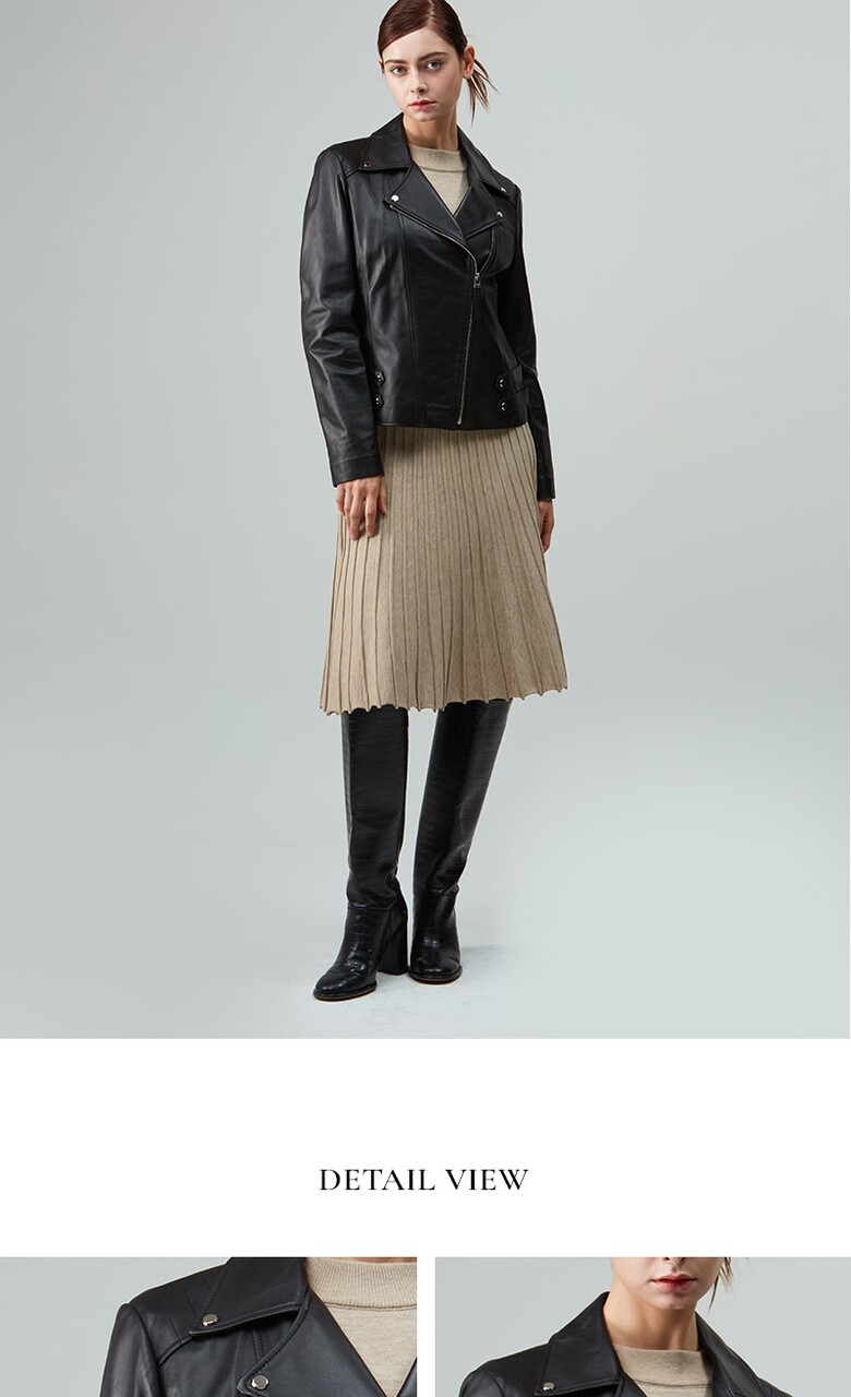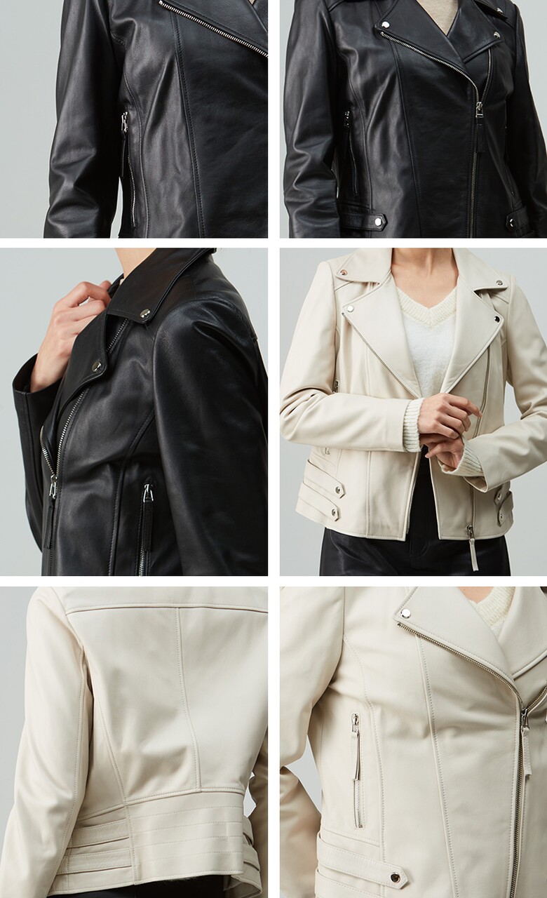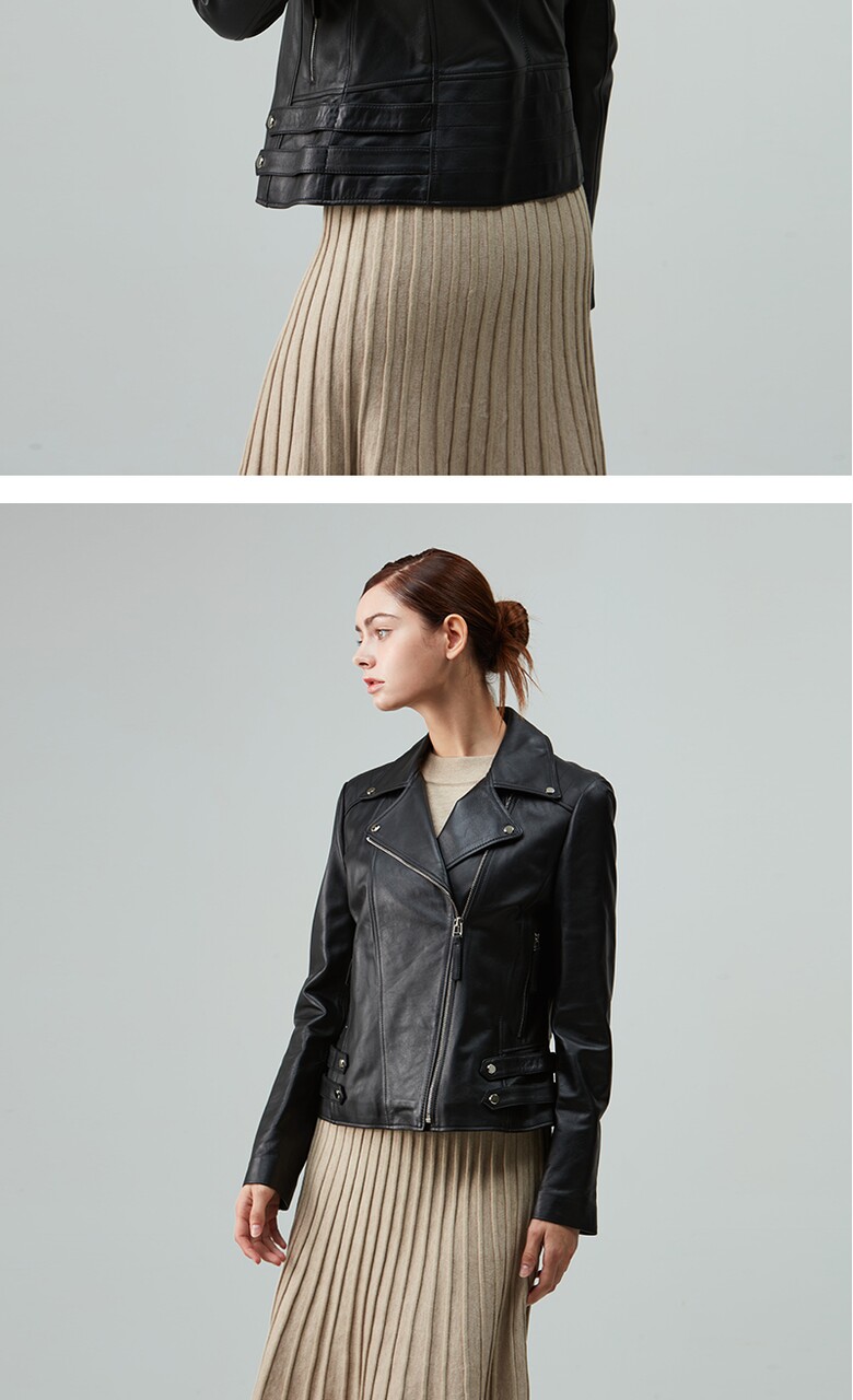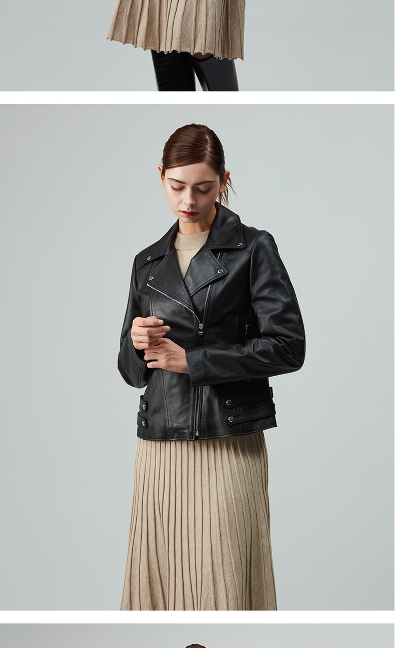 후스타일 여성 지퍼 커프스 레더 라이더 자켓 블랙