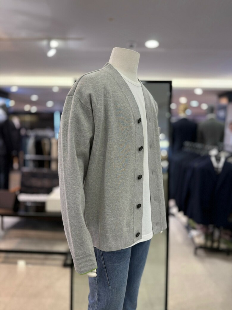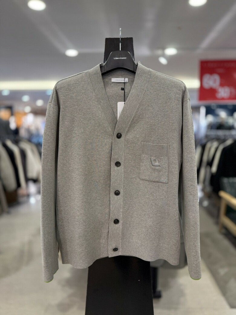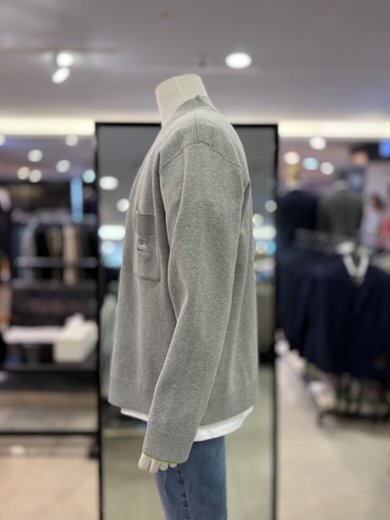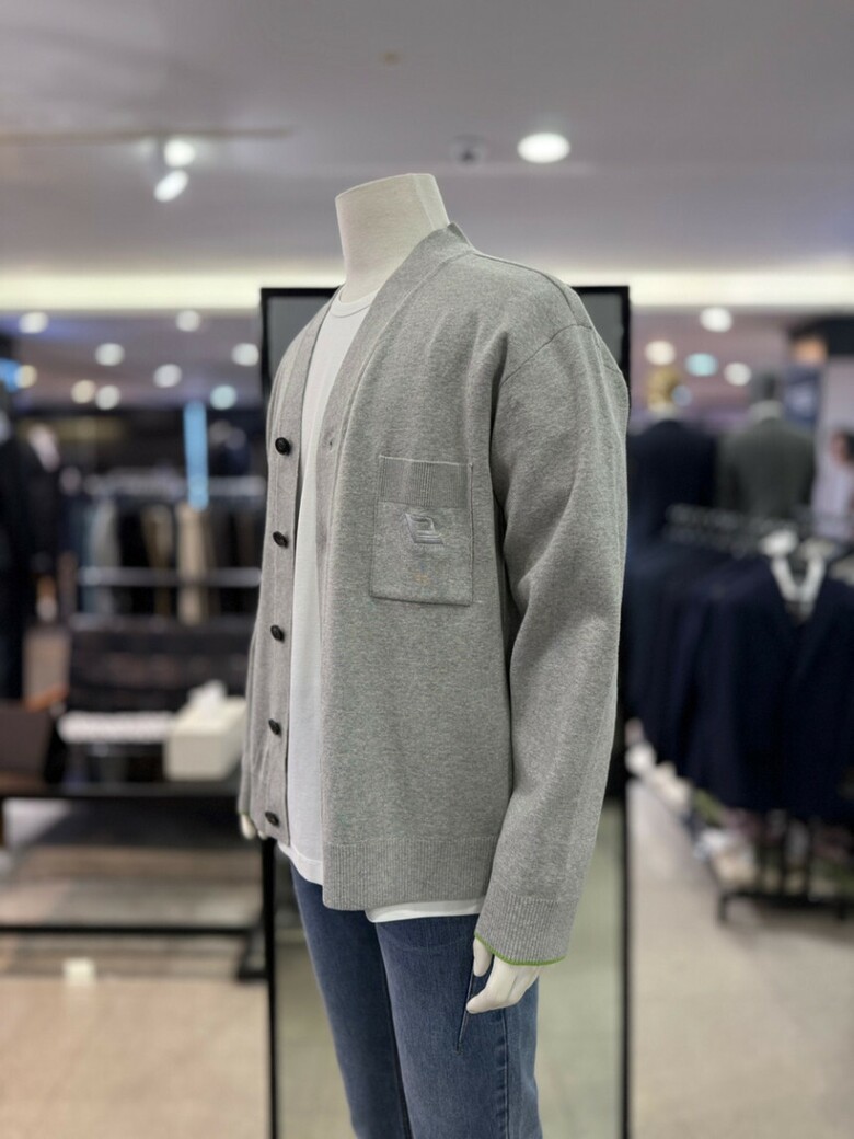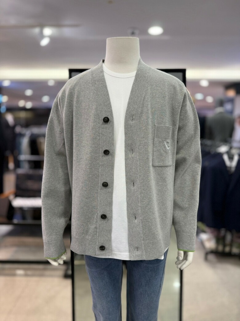 리버클래시 멜란지그레이 포켓 자수 포인트 브이넥 가디건 LLS51586