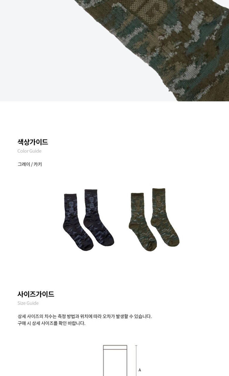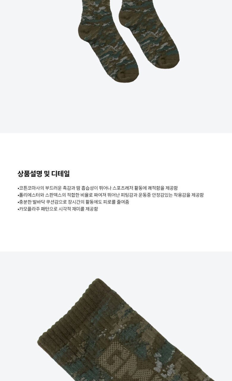 지오메트릭 그라운드 카모 플라주 중목양말 카키 4팩