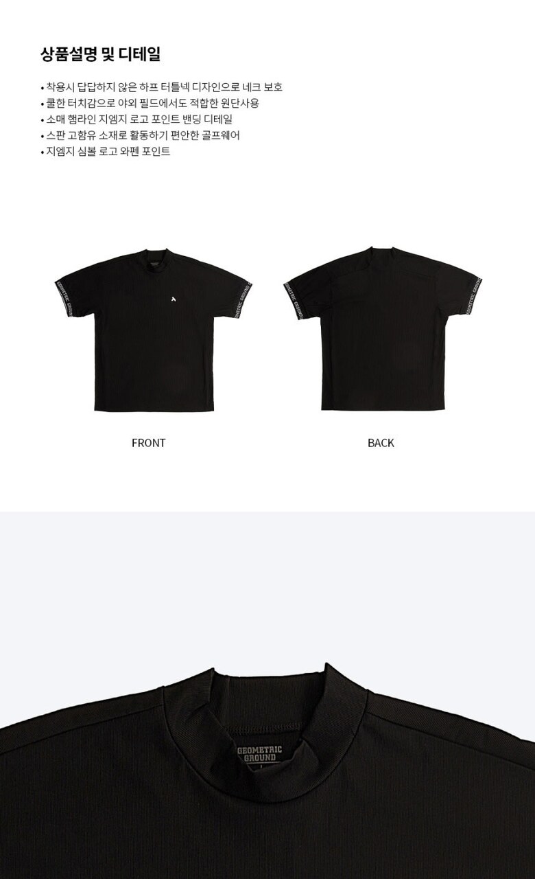 지오메트릭 그라운드 남성 터틀넥 골프웨어 반팔 티셔츠 블랙