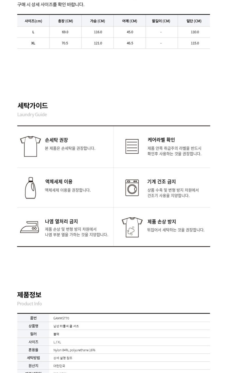 6. 세탁방법 및 취급시 주의사항 | 상품상세 참조 |