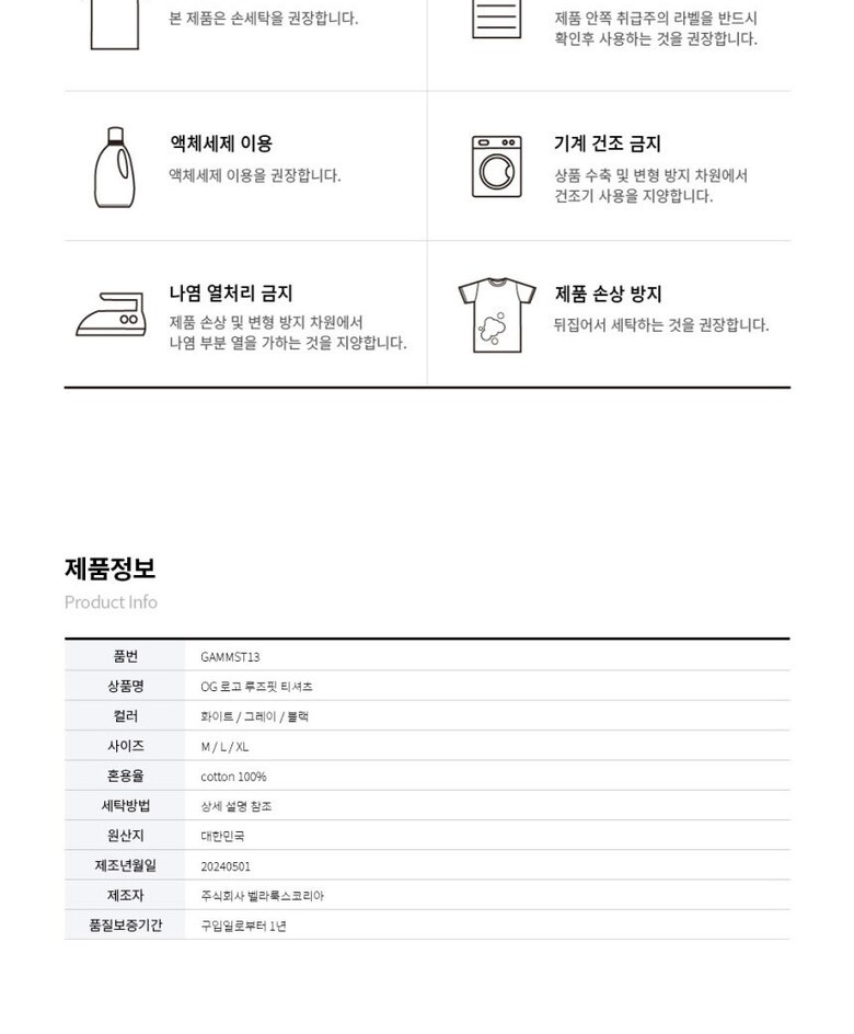 6. 세탁방법 및 취급시 주의사항 상품상세 참조