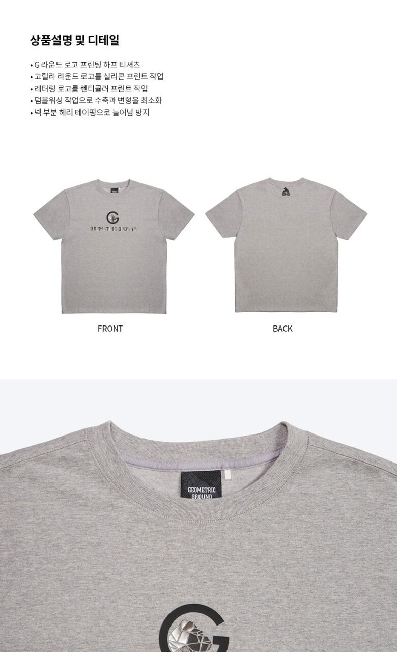 지오메트릭 그라운드 남성 G 라운드 로고 그래픽 반팔 티셔츠 멜란지그레이