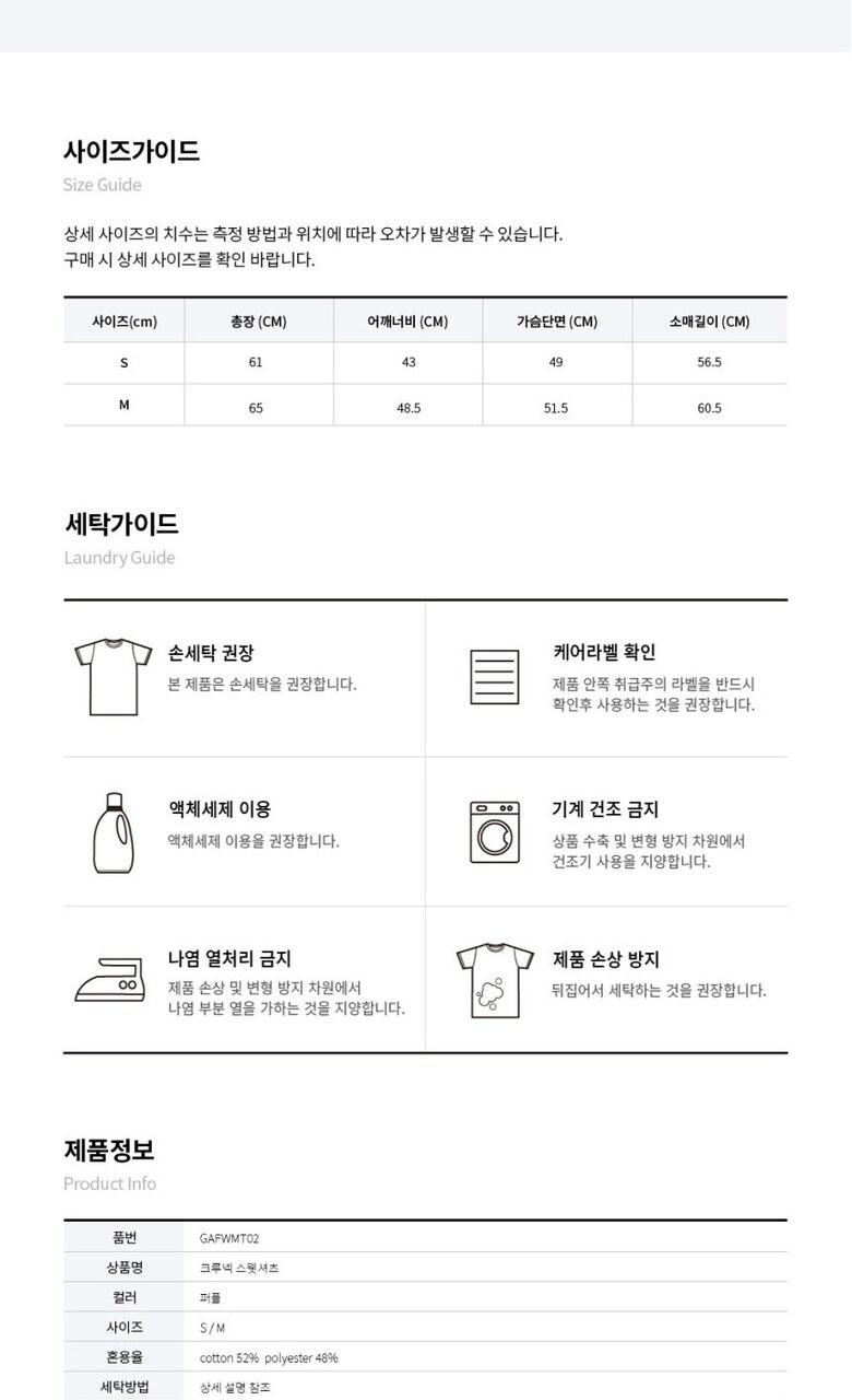 6. 세탁방법 및 취급시 주의사항 | 상품상세 참조 |