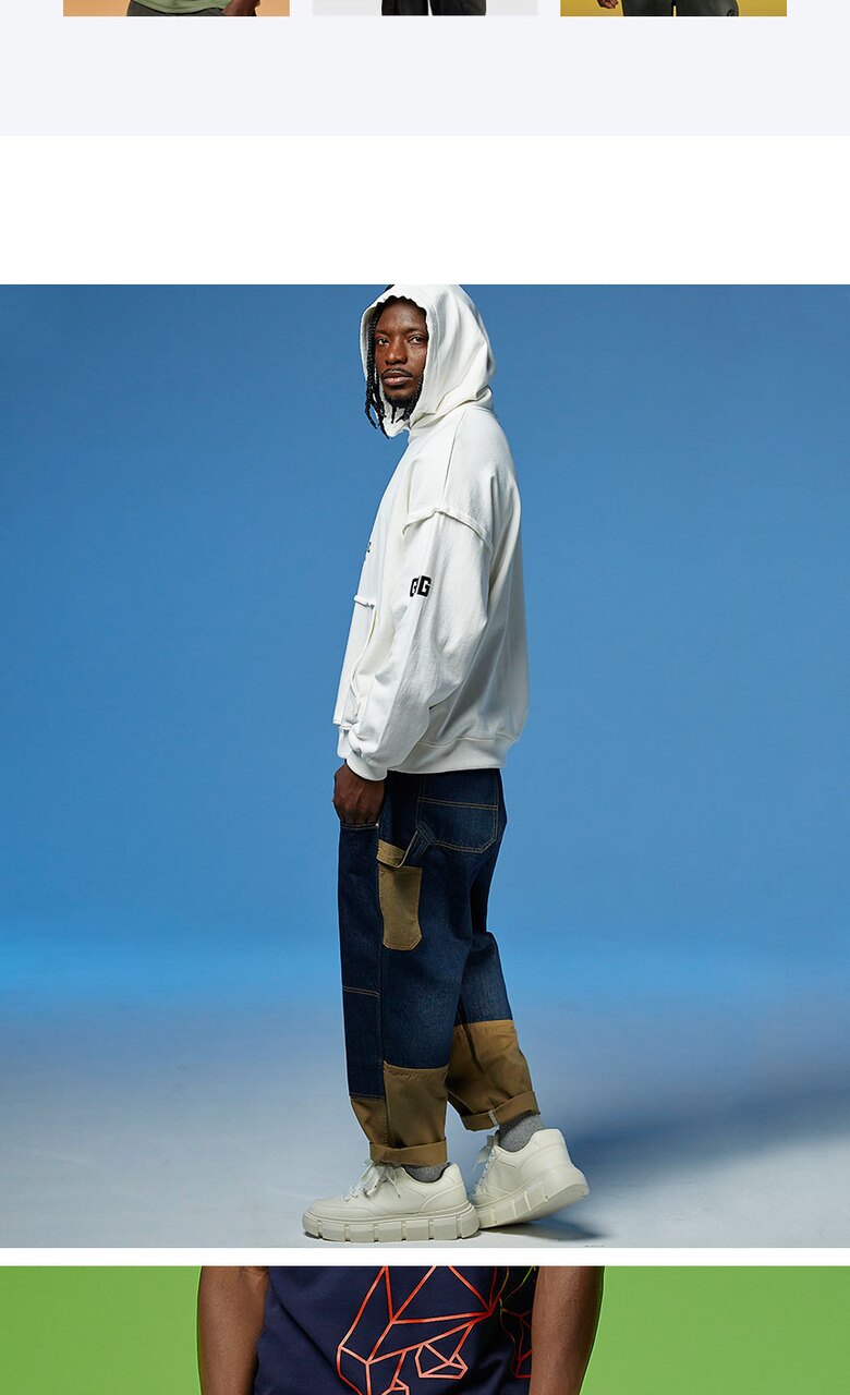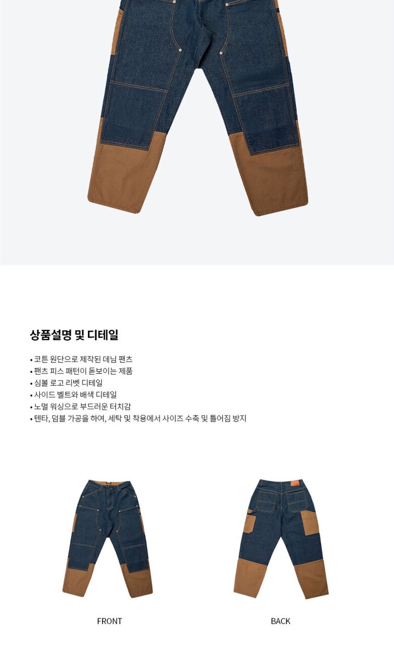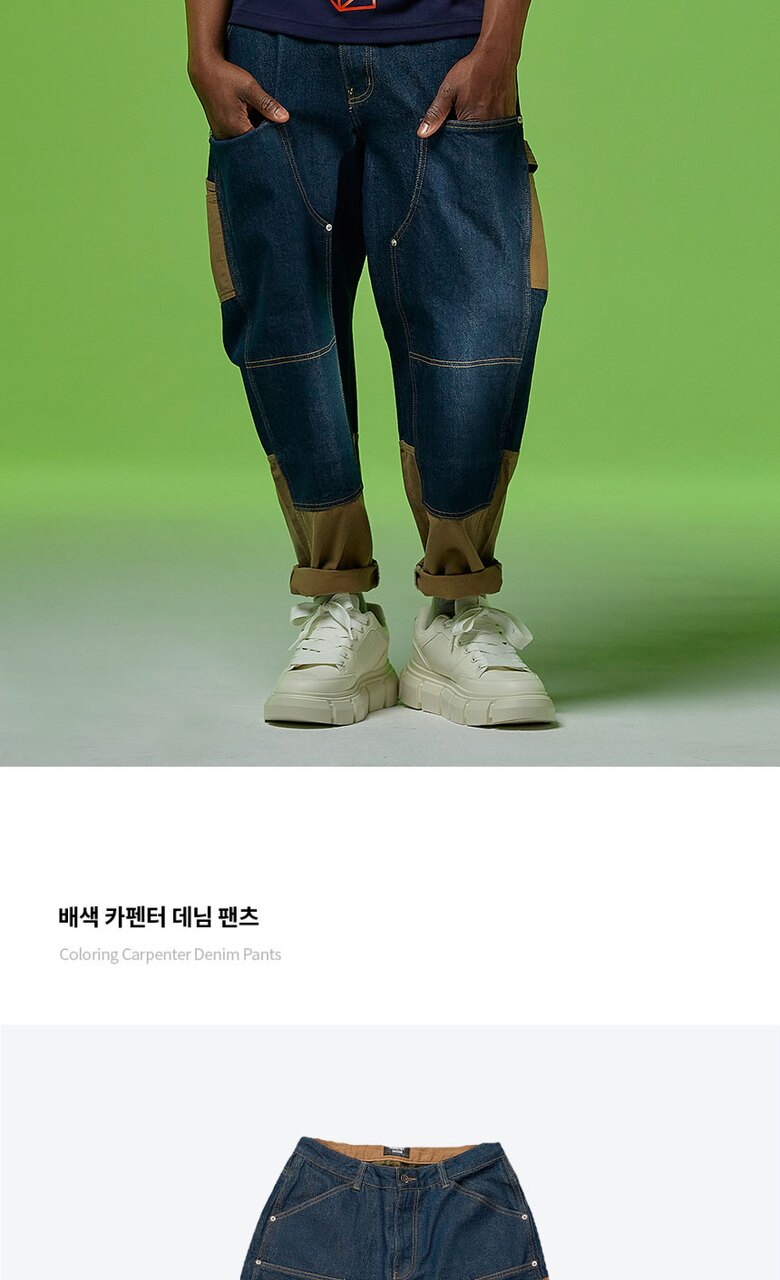 지오메트릭 그라운드 남성 배색 카펜터 데님 팬츠 인디고