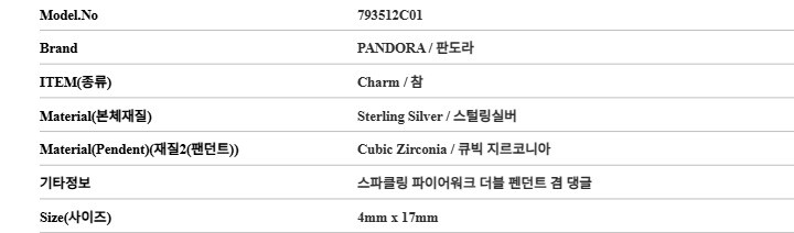 | 1. 소재 / 순도 / 밴드재질 | 실버 / 쥬얼리 - 스털링실버 / 팬던트 - 큐빅 지르코니아 |