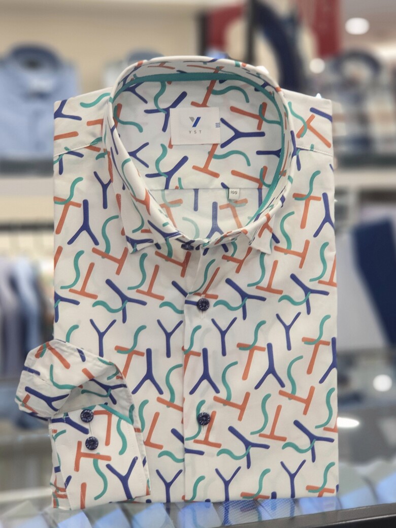 [예작셔츠] 면100 올오버 프린트 슬림핏셔츠 YJ3SYS726 OR