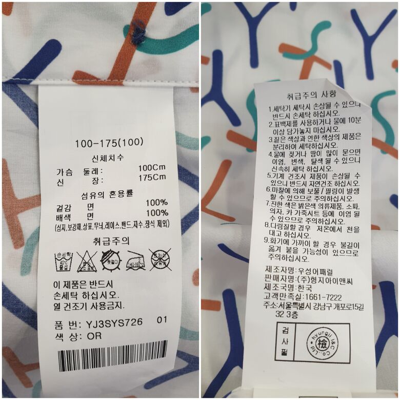 6. 세탁방법 및 취급시 주의사항 | 상품상세참조 |