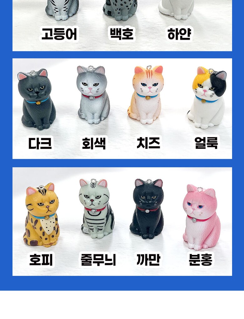 3. 색상 고등어, 백호, 하얀, 다크, 회색, 치즈, 얼룩, 호피, 줄무늬, 까만, 분홍고양이