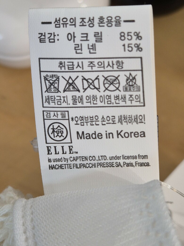 | 2. 소재 | 겉감:아크릴 85%, 린넨 15% |