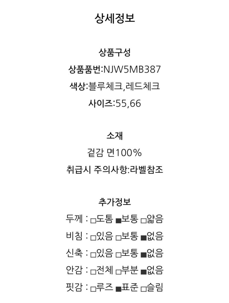 | 6. 세탁방법 및 취급시 주의사항 | 상품상세참조 |