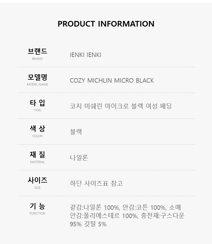 [명품] COZY MICHLIN MICRO BLACK 여성 패딩