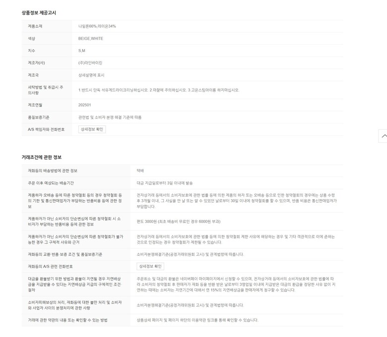 1. 제품 소재 (섬유의 조성 또는 혼용률을 백분율로 표시, 기능성인 경우 성적서 또는 허가서) 상품상세참조