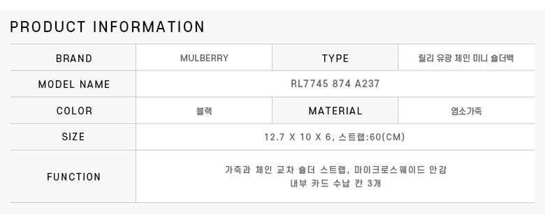 [명품] 멀버리 미니 릴리 크로스백 블랙 RL7745 874 A237