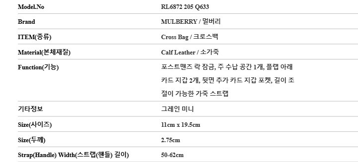 - #리본즈코리아 #RL6872205Q633 #[명품] #멀버리 #안토니 #그레인 #미니 #크로스백 #그린 #RL6872 #205 #Q633 #여성 #가방/핸드백 #크로스/메신저백