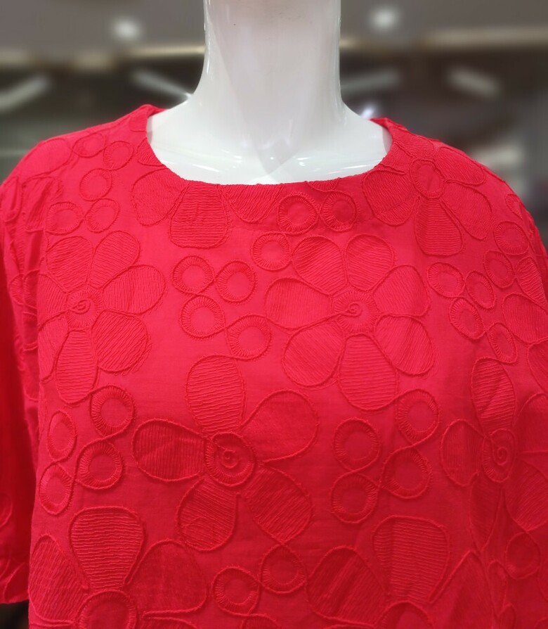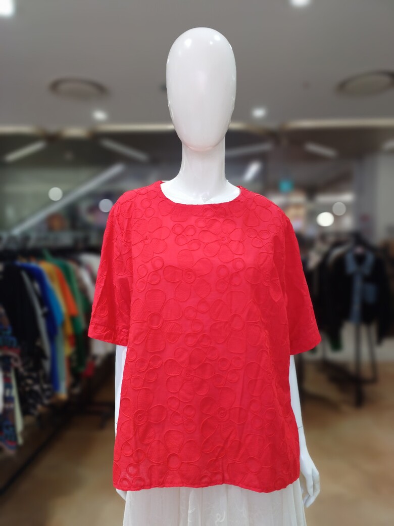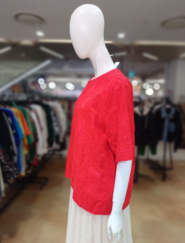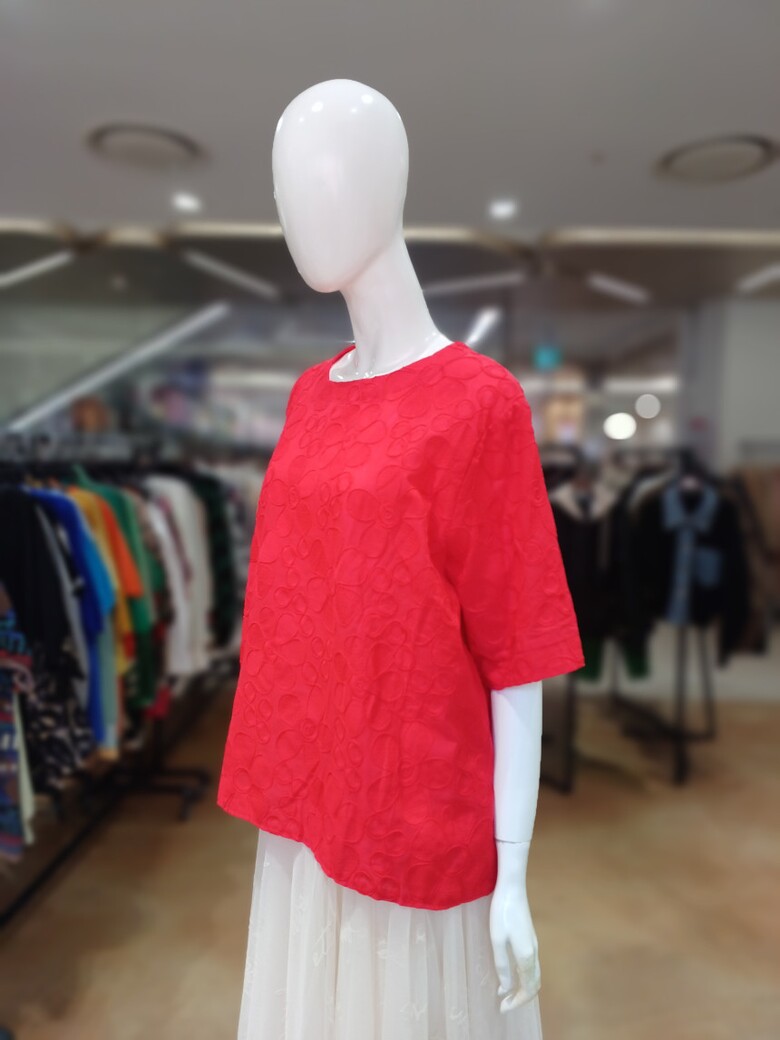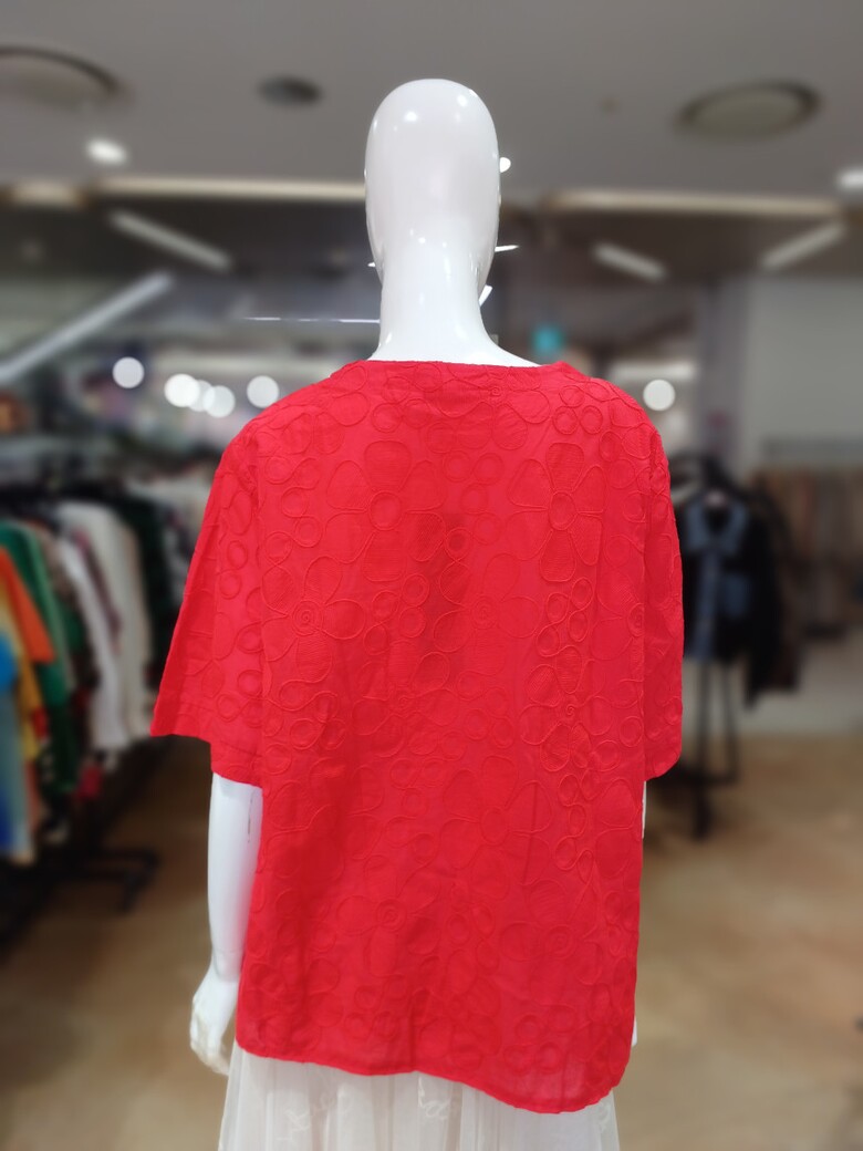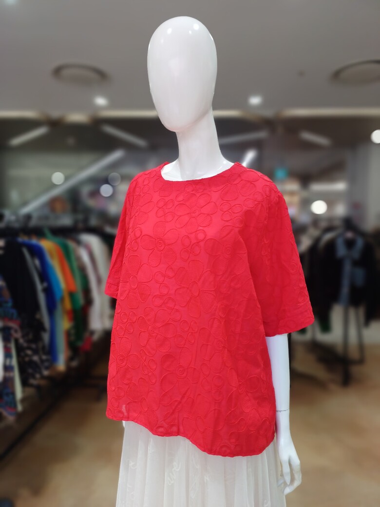 꽃자수가 포인트인 라운드 블라우스 입니다