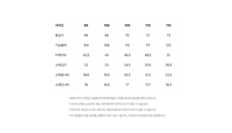 | 1. 제품 소재 (섬유의 조성 또는 혼용률을 백분율로 표시, 기능성인 경우 성적서 또는 허가서) | 상품상세참조 |